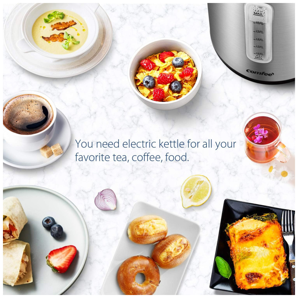 Componentes incluídos Chaleira elétrica sem fio de aço inoxidável Comfee de 1,7 litros