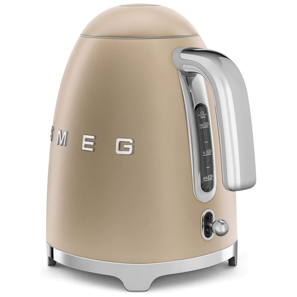 Chaleira Elétrica SMEG 50s Retro Style 7 Cup com Desligamento Automático Base Removível e Indicador de Água KLF03CHMUS Acabamento Fosco Champagne