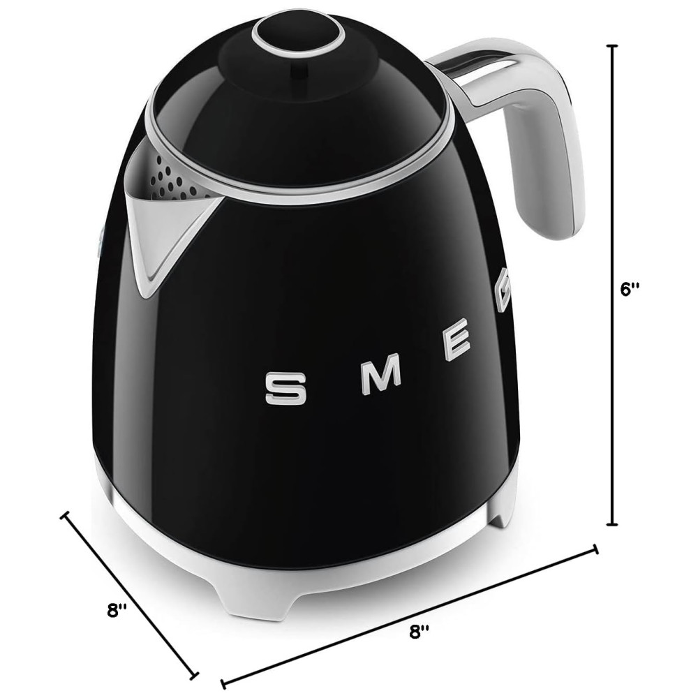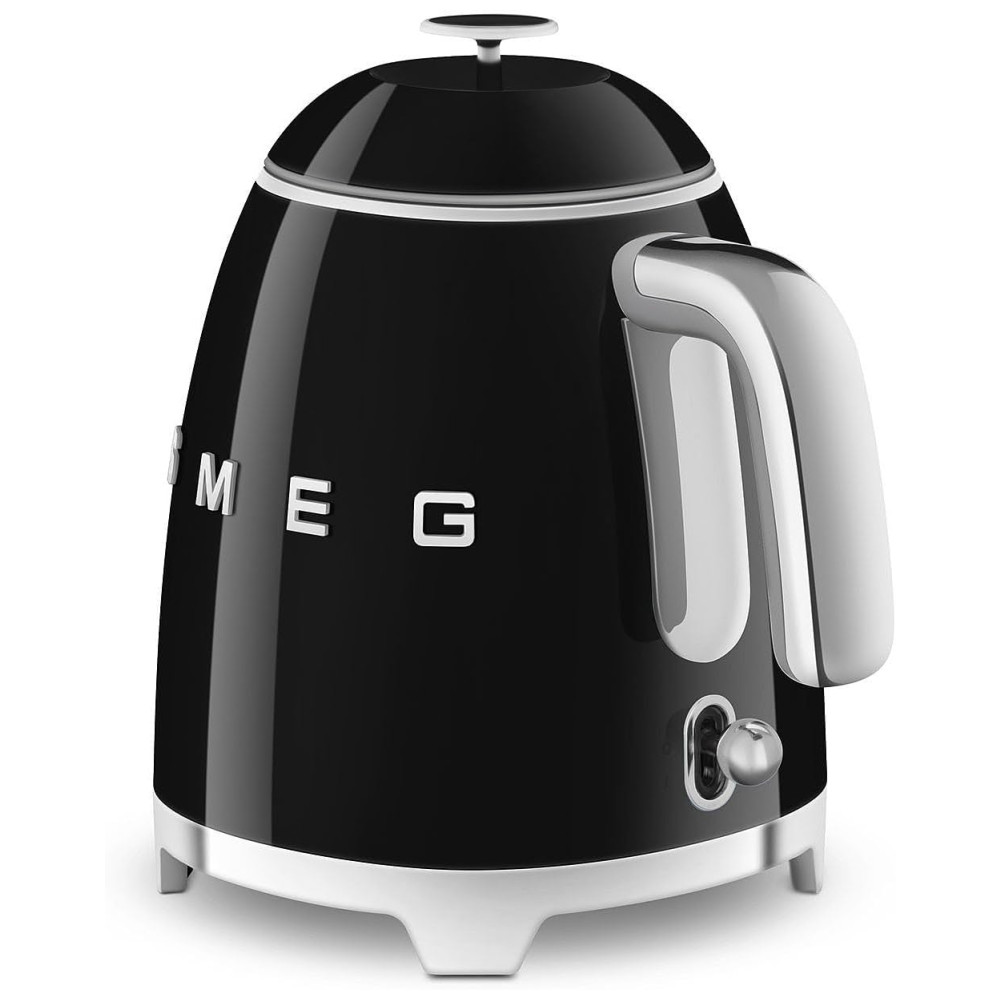 Chaleira Elétrica SMEG Mini 50s Retro Style de 3 xícaras com Base Antideslizante de Parede Dupla e Indicador de Nível de Água – Preto