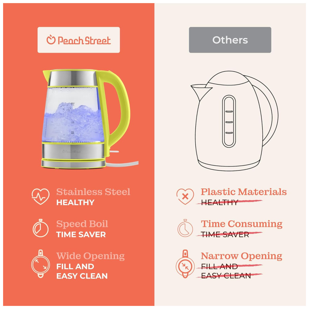 Chaleira Elétrica SpeedBoil Water 17L 1500W Vidro Borossilicato Desligamento Automático Design Ergonômico LED – Peach Street