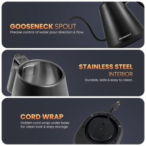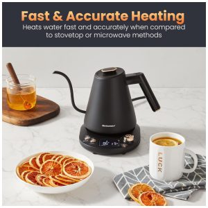 Chaleira Eletrônica de Luxo Elite Gourmet EKT3001 1L Interior em Aço Inox 304 Programação de Temperaturas Manter Quente Sem Fio Base Giratória Desligamento Automático.