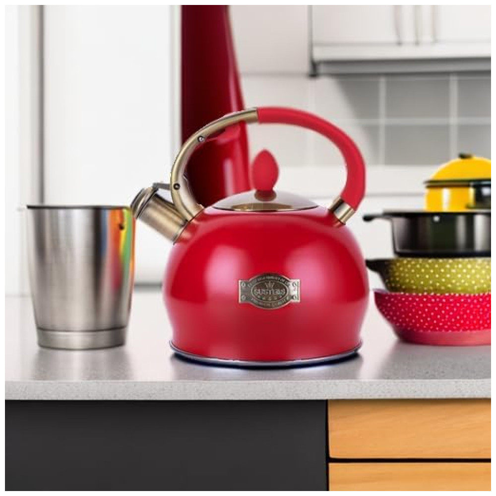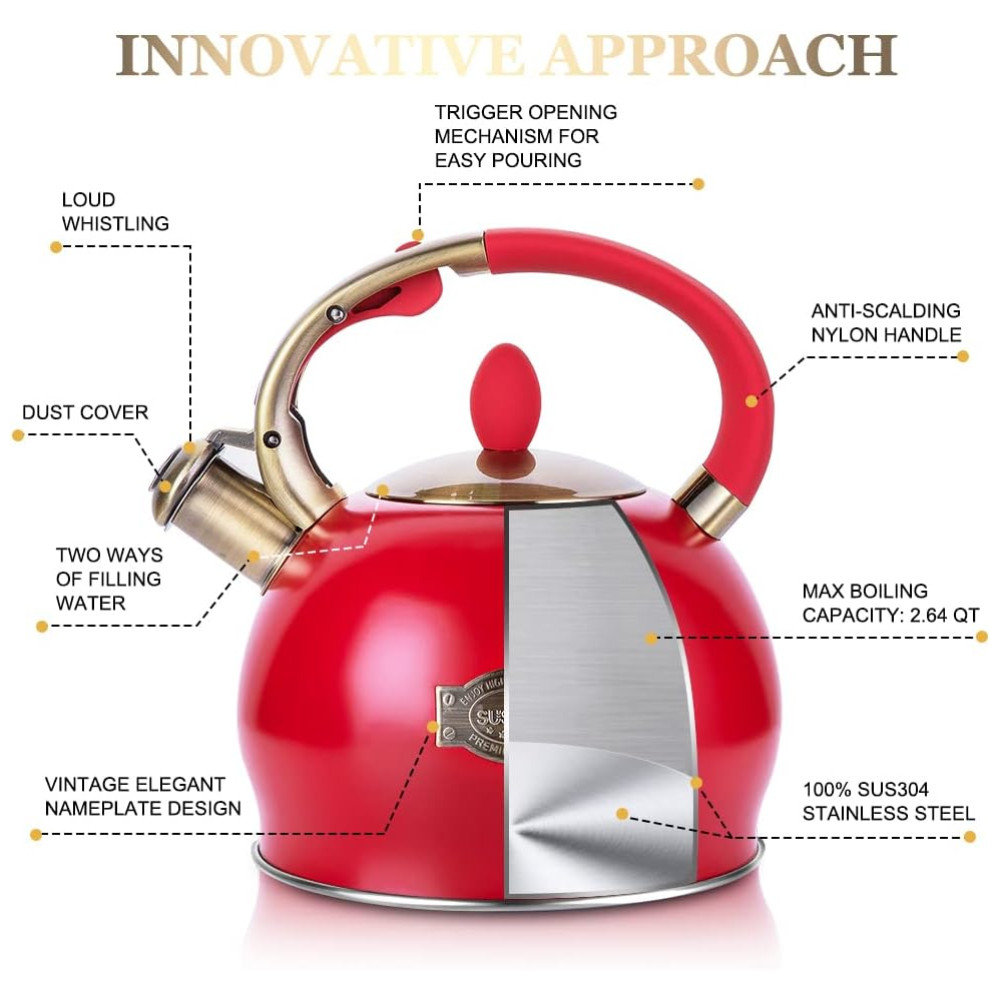 SOM DE ASSOBIO PERFEITO GRANDE CAPACIDADE Faça chá com esta chaleira grande de 2,64 Quart para toda a sua família. O apito alto garante que você possa ouvi lo de outra sala quando a água estiver fervendo.