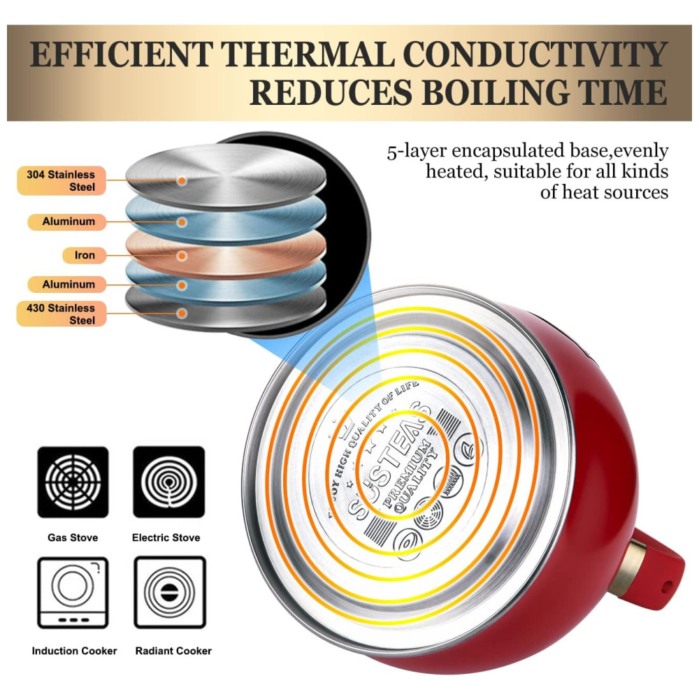 INOVATIVE INFERIOR Ferve A ÁGUA MAIS RÁPIDO A chaleira SUSTEAS é feita de uma base encapsulada de 3 camadas, mesmo o calor ferve a água mais rápido.