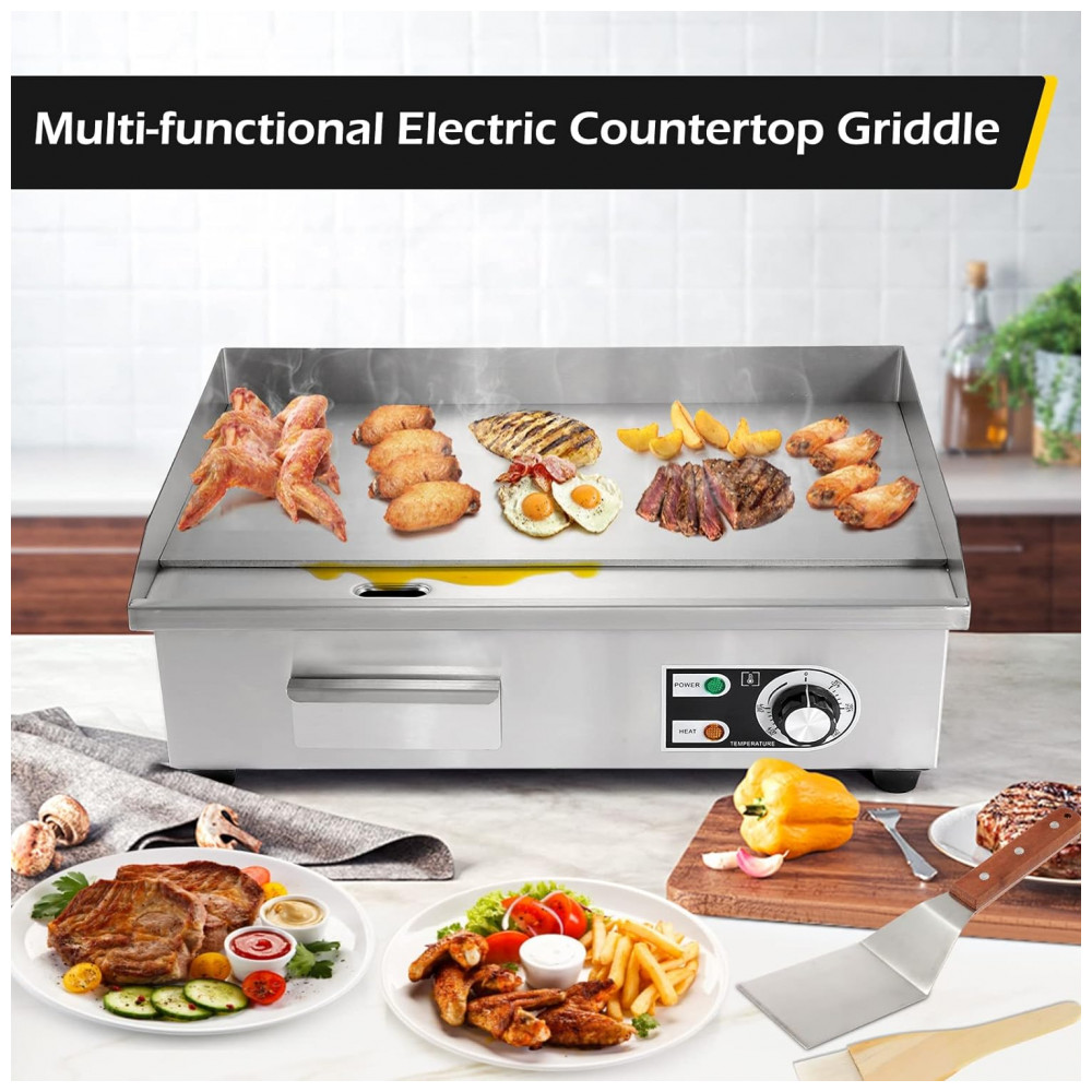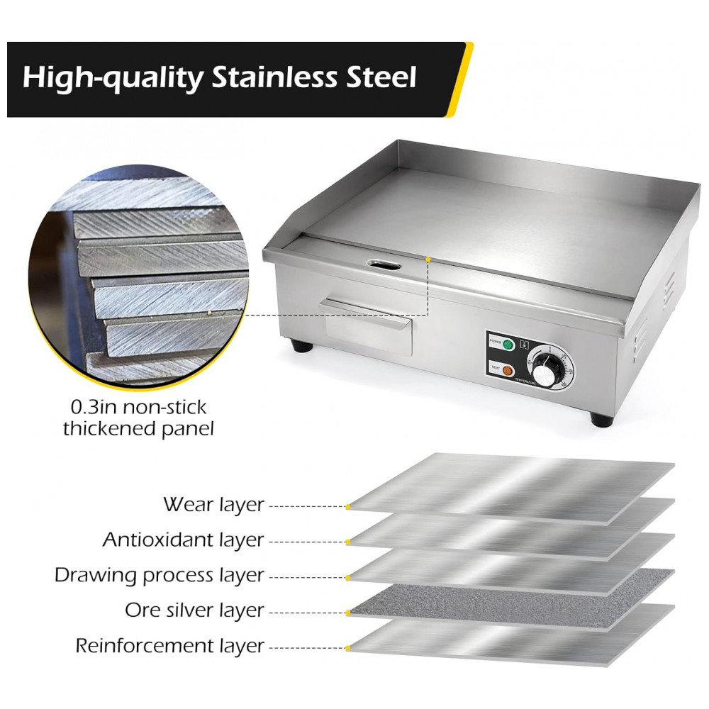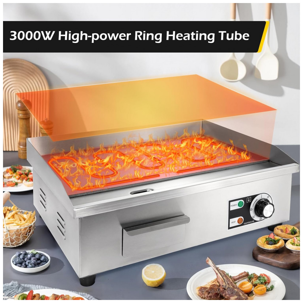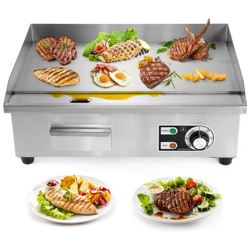 Grande chapa de bancada elétrica O antiaderente elétrico de grade plana é feito de aço inoxidável de alta qualidade, tamanho da placa de cozimento de 55 x , a chapa elétrica de aço inoxidável com uma grande superfície de cozimento que você pode fritar bife, frango ou outra carne ao mesmo tempo.