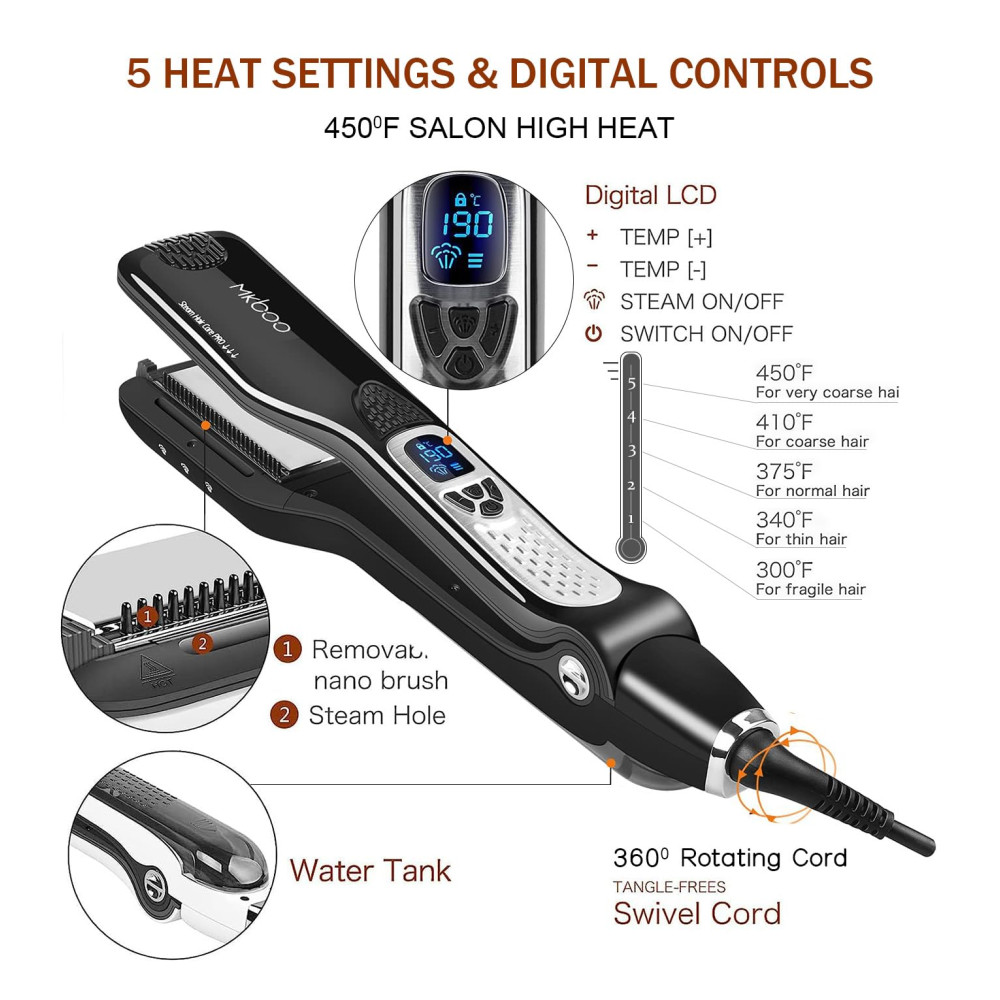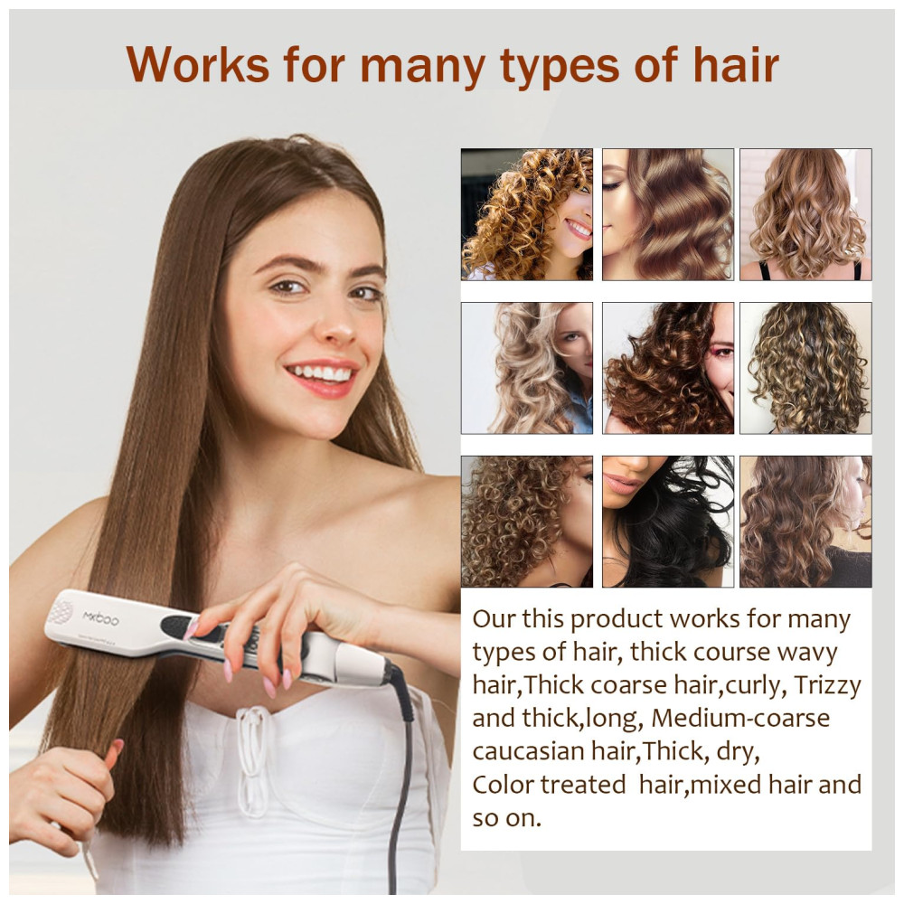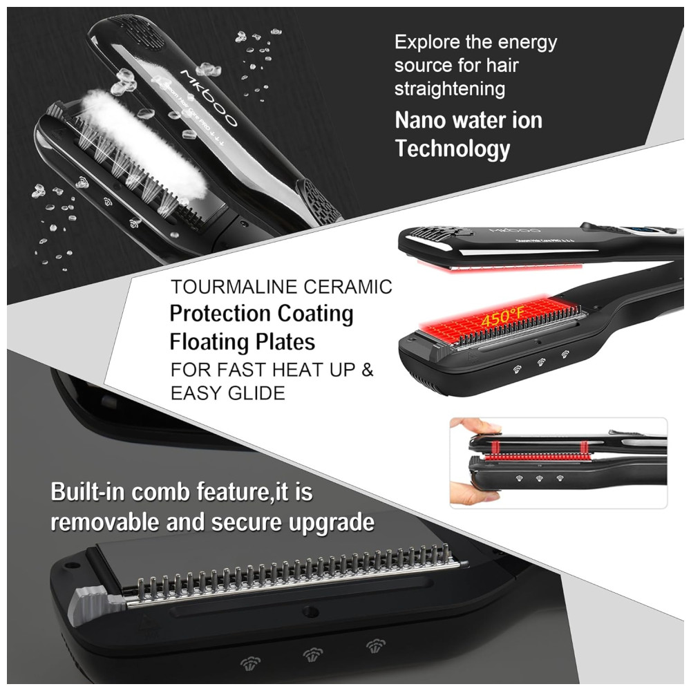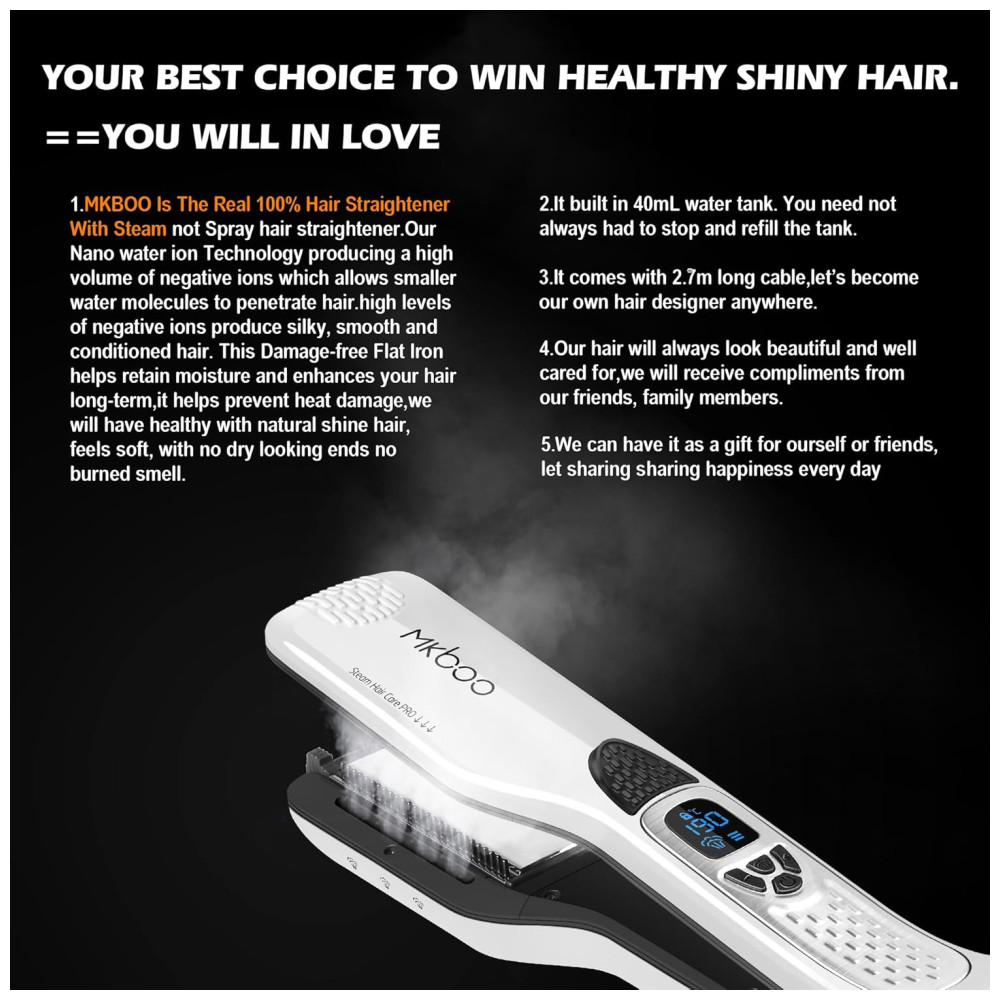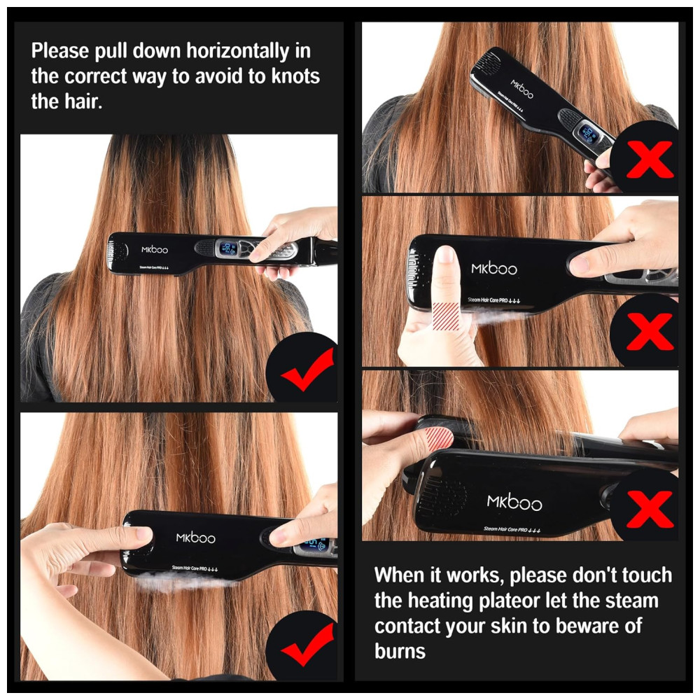 Modelador de Cabelo a Vapor MKBOO: O modelador de cabelo MKBOO combina tecnologia inovadora com praticidade para oferecer cabelos lisos e saudáveis. Com 7 orifícios para vapor, ele garante uma liberação constante de 4,5 g/min de vapor, permitindo que os íons de água penetrem profundamente nos fios, do comprimento às raízes. Isso resulta na retenção de 90% da umidade, proporcionando cabelos mais hidratados e com aparência sedosa, ao invés de um visual liso e danificado.