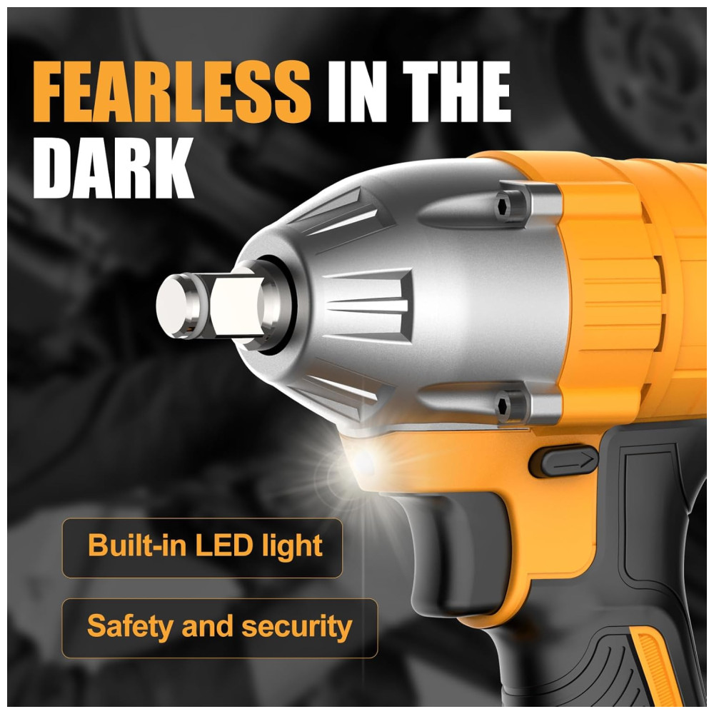 Brute Power, 3400 IPM Esta chave de impacto oferece torque máximo de aperto, torque máximo de remoção. Recursos com 3400 IPM, modo de 2 velocidades e até 2900 RPM ajudam você a remover as porcas em segundos. A pistola de impacto é uma fera absoluta você pode facilmente ajustar a quantidade certa de torque para porcas de carro ou parafusos de máquinas agrícolas, é absolutamente um bom parceiro para o seu trabalho