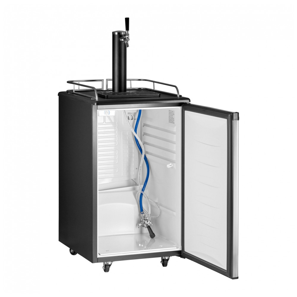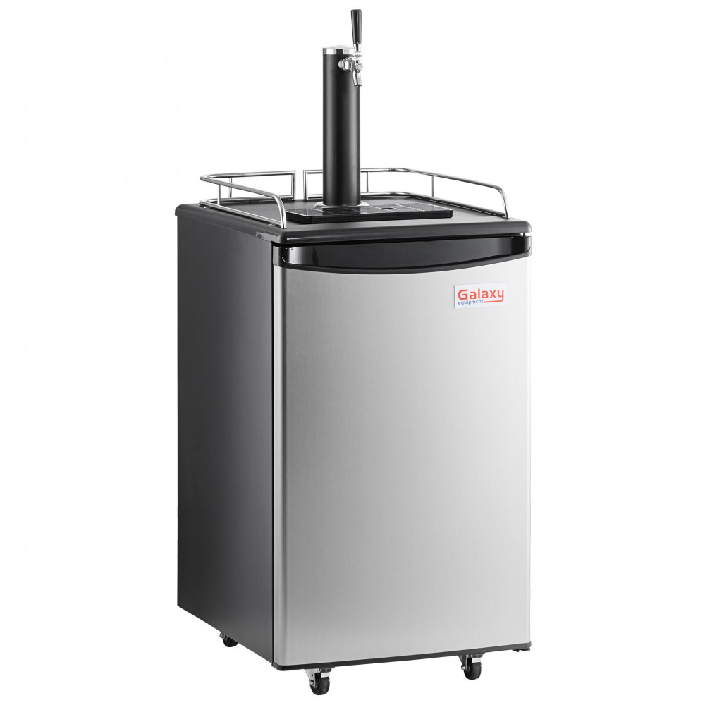 O Galaxy Single Tap Kegerator é um dispensador de chope projetado para uso em eventos leves, como pequenas festas corporativas ou reuniões de grupo, com capacidade para 1 barril de 1/2 (estilo 1/2 barrel). Ele utiliza isolamento em espuma injetada no local e sistema de refrigeração eficiente com refrigerante R-600a para manter a temperatura ideal de serviço entre 2°C e 10°C. O interior forrado em plástico e porta de aço com revestimento de vinil facilitam a limpeza.