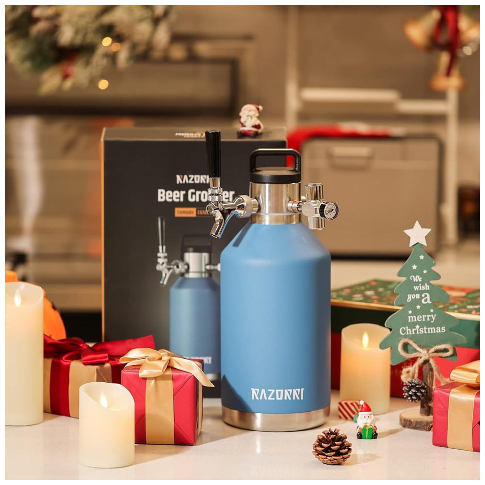 Chopeira Portátil 5L com Torneira e Regulador de CO2 Aço Inoxidável RAZORRI Azul