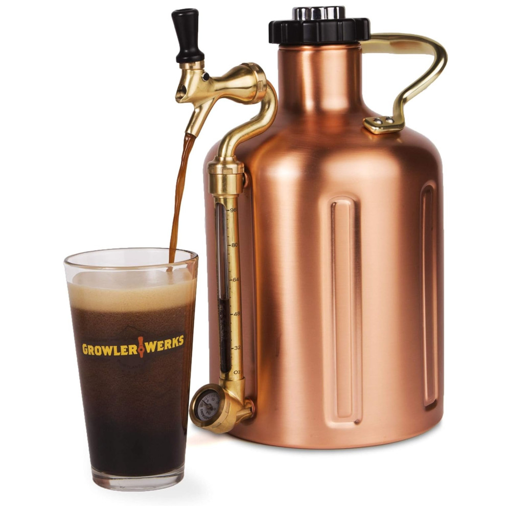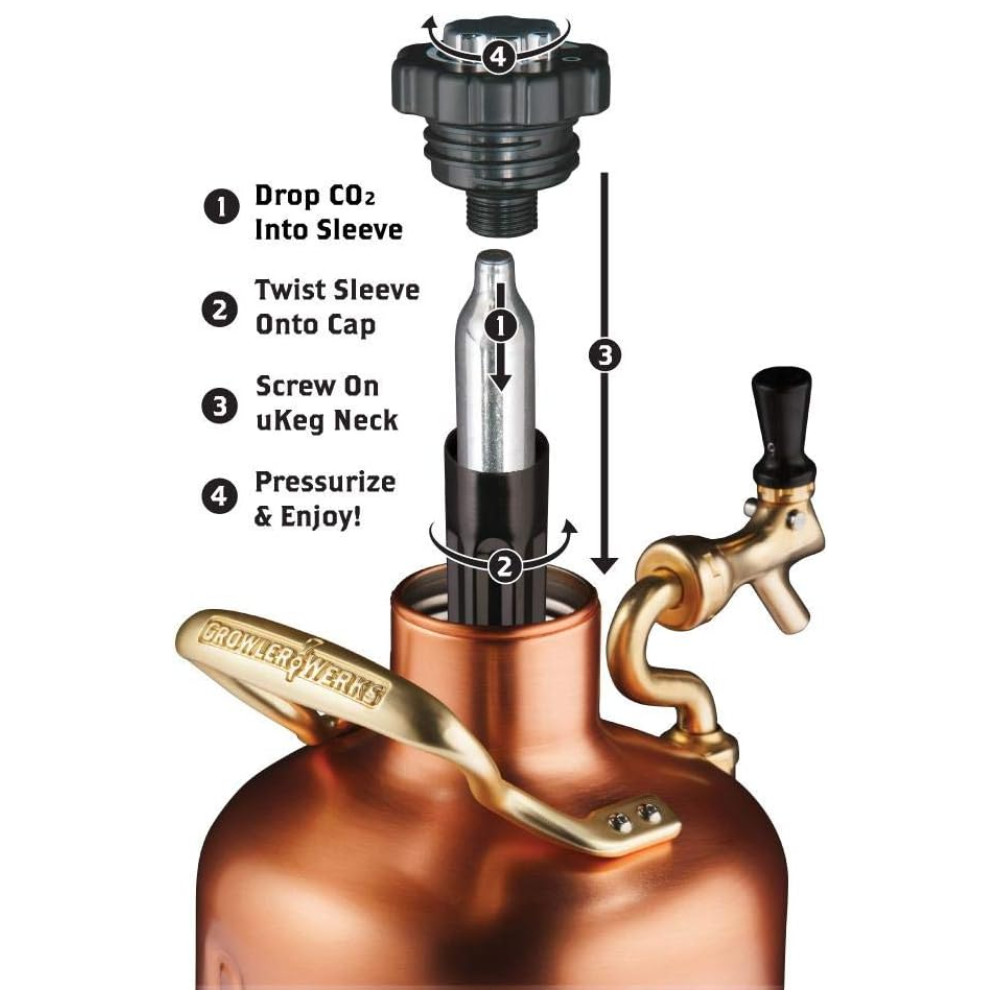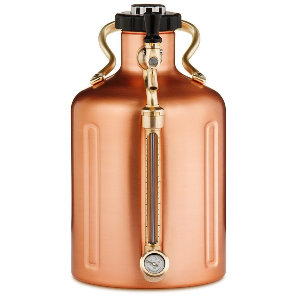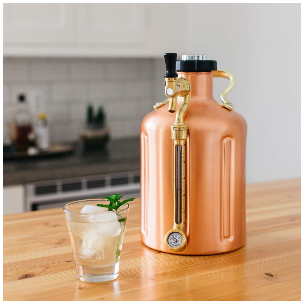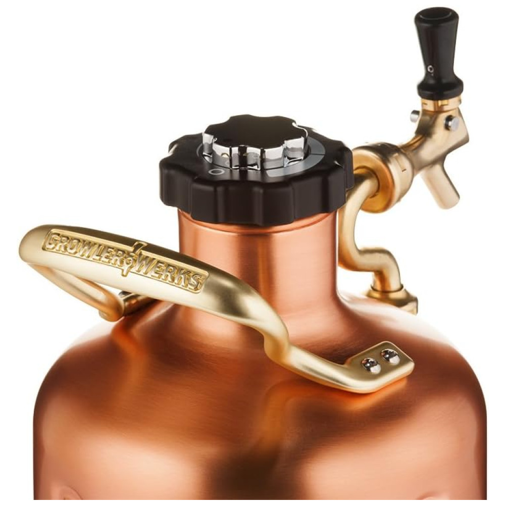 Chopeira Portátil 5L com Torneira e Regulador de CO2 Aço Inoxidável Rose Gold GROWLERWERKS Copper Dourado