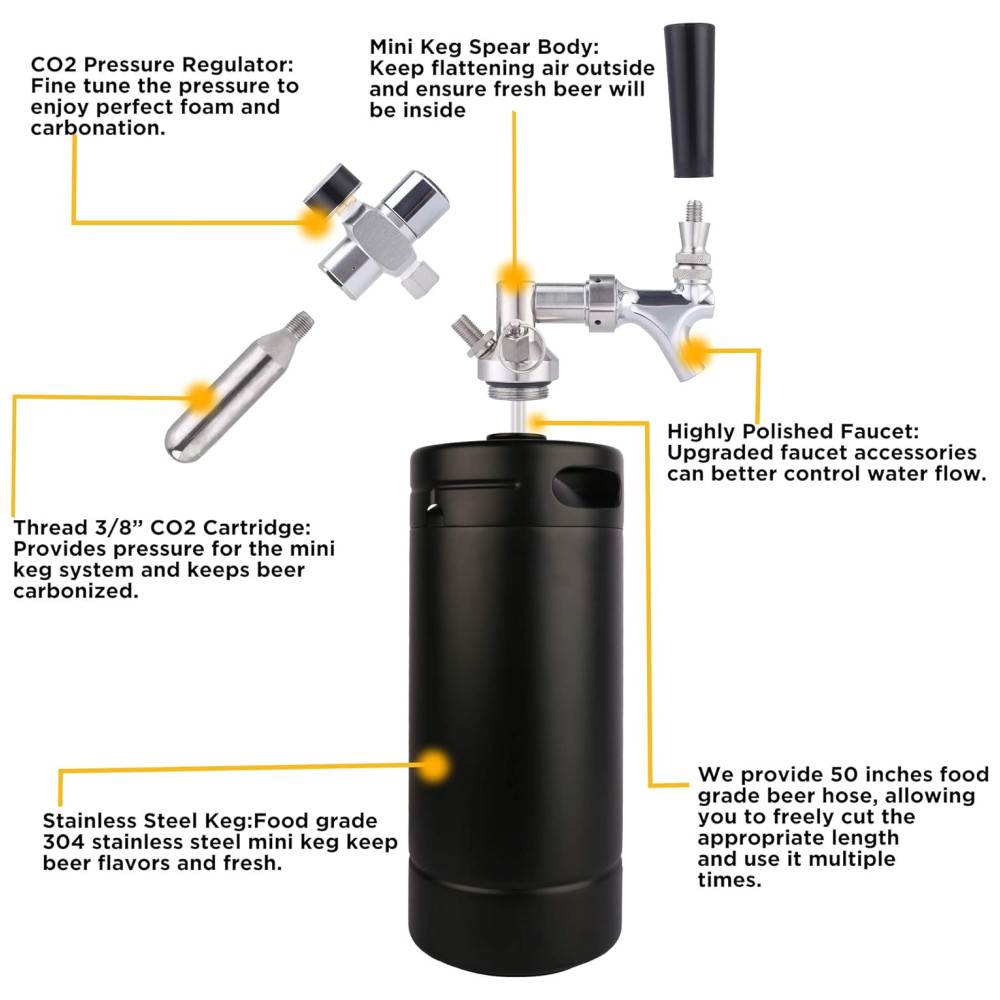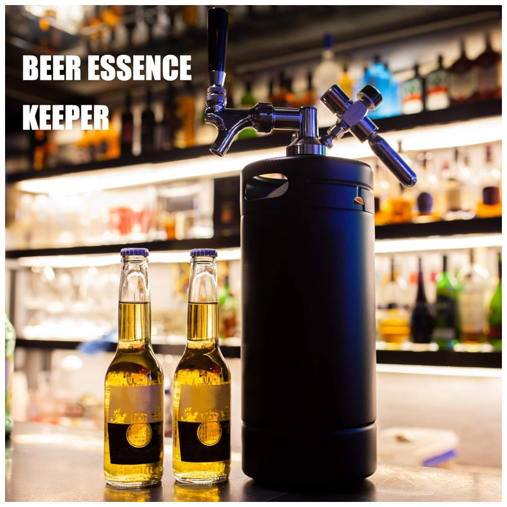 MANTENHA SUA CERVEJA FRESCA O mini sistema dispensador pode manter a pressão de vácuo no barril e manter fresca a cerveja caseira, chope e cerveja artesanal por alguns meses, também o material de aço inoxidável de qualidade alimentar mantém o sabor da cerveja
