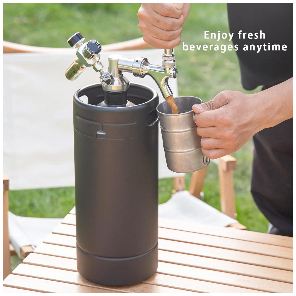 Chopeira Portátil 5L com Torneira e Regulador de CO2 Aço Inoxidável TMCRAFT Preto