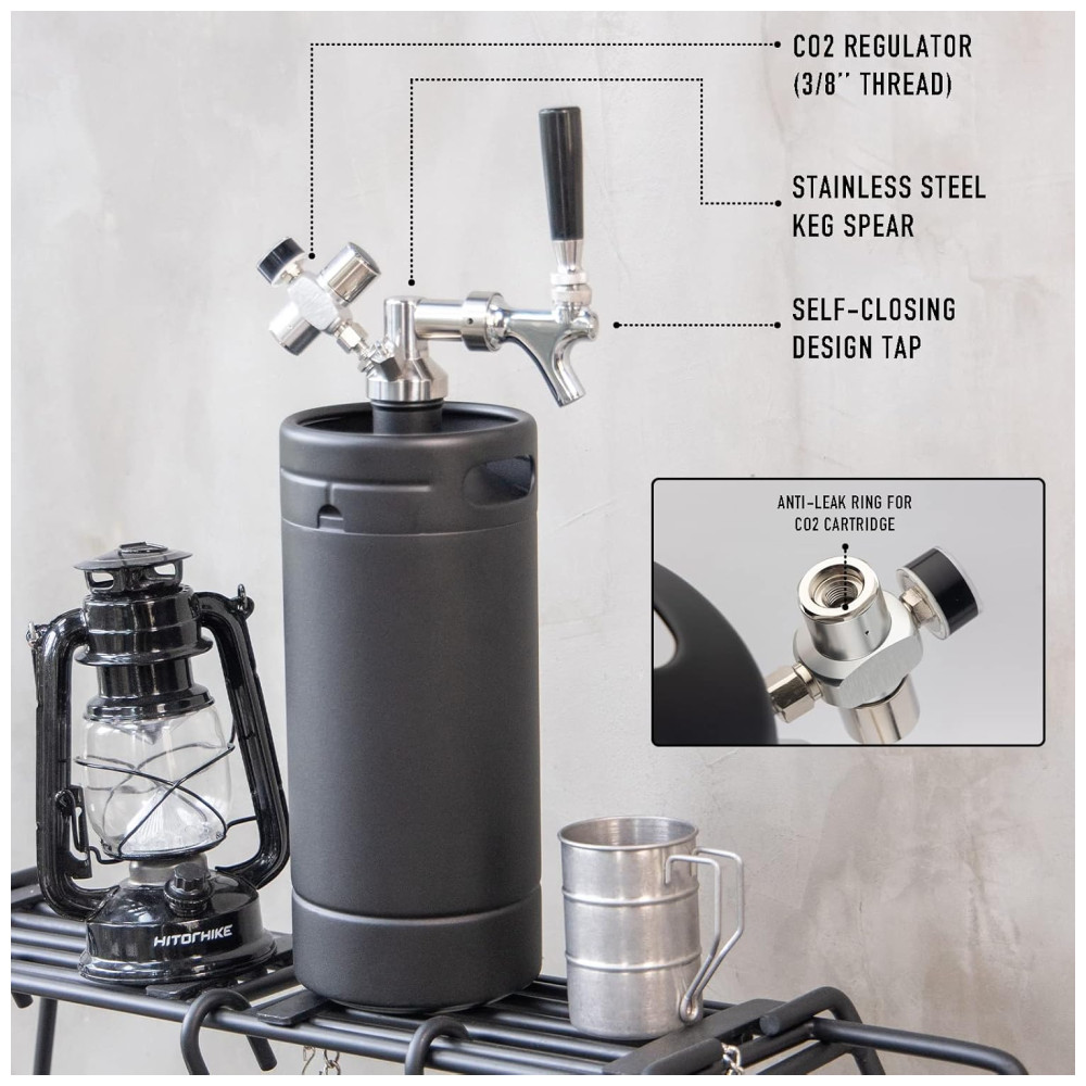 SISTEMA DE CARTUCHO DE CO2 Aparafuse os cartuchos de gás CO2 rosca de no suprimento de regulação para manter a carbonatação perfeita. A cápsula de 16g pode bater 5L de cerveja. CARTUCHO DE CO2 NÃO INCLUÍDO