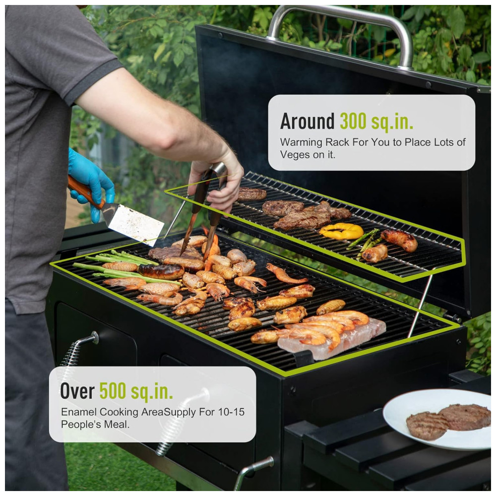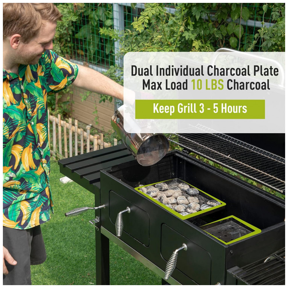 Churrasqueira a Carvão com Bandeja de Cinzas de Fácil Limpeza e Área de Cozimento Grande MFSTUDIO Preta