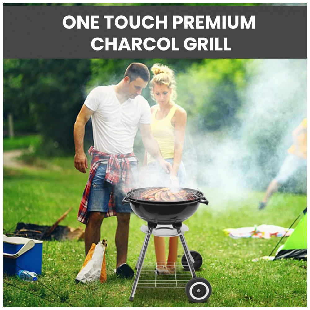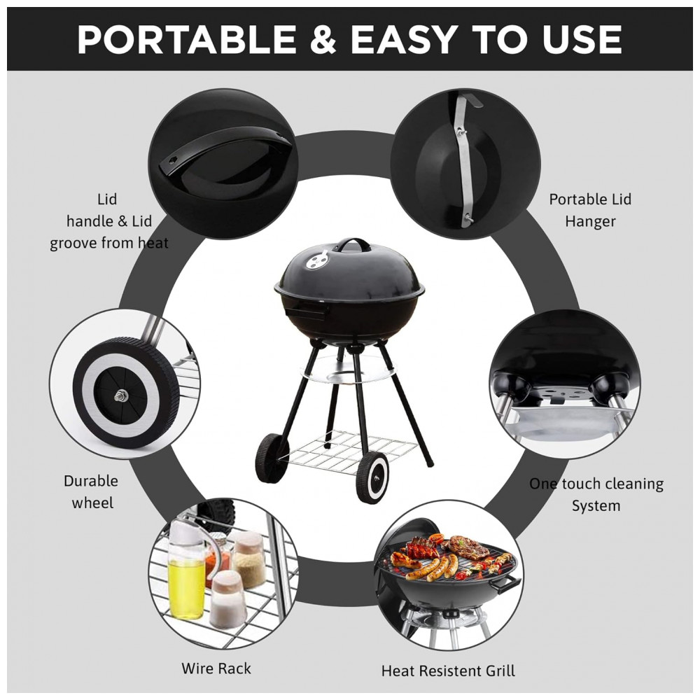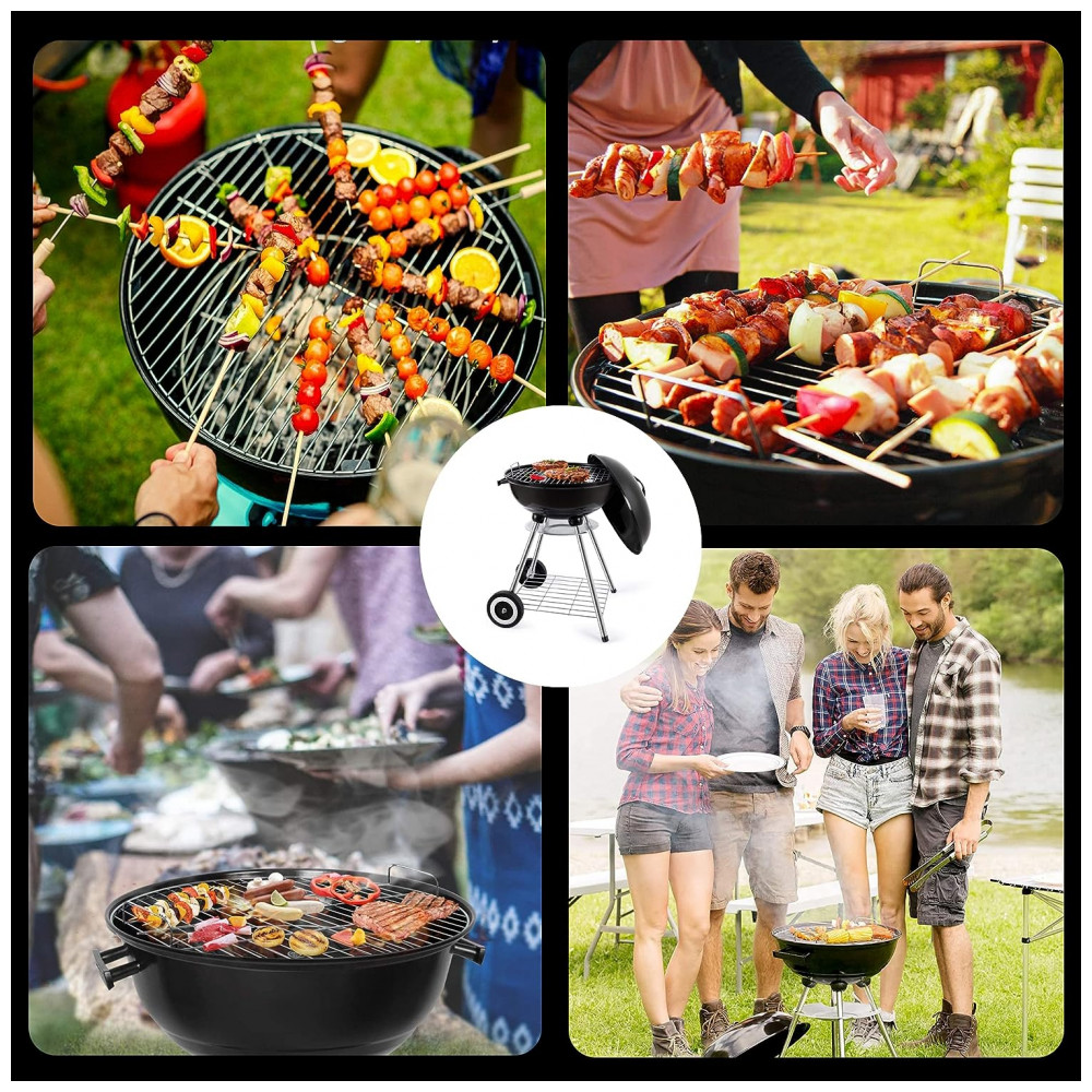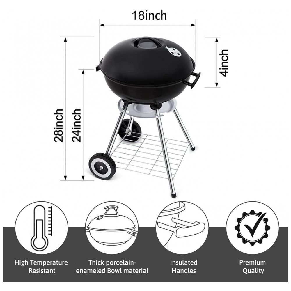 Portátil com rodas: embalagem melhorada e material durável. O grelhador a carvão redondo de 18 polegadas é pequeno, leve e fácil de instalar. Pode ser transportado para diversos locais como praias, fazendas e quaisquer outros locais ao ar livre