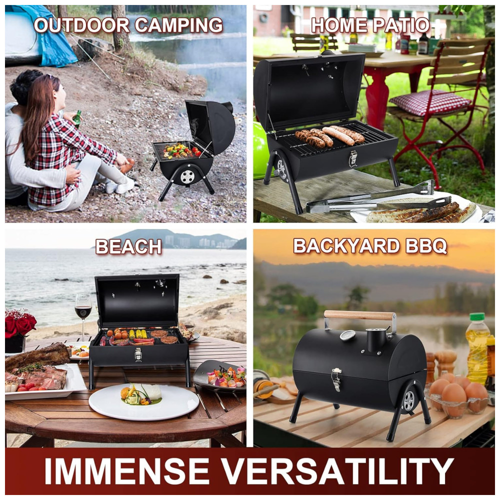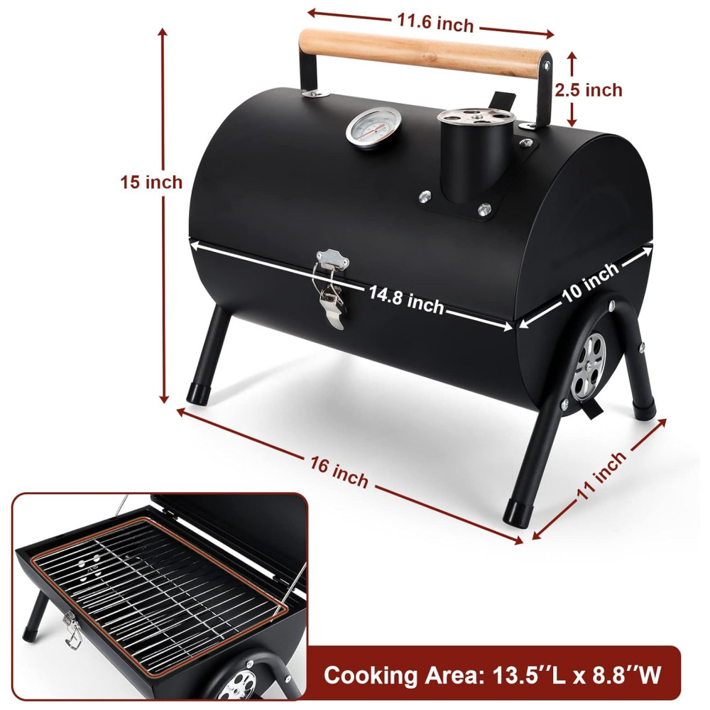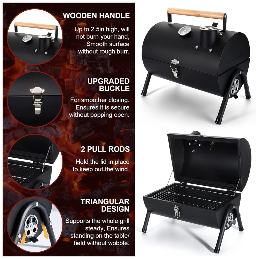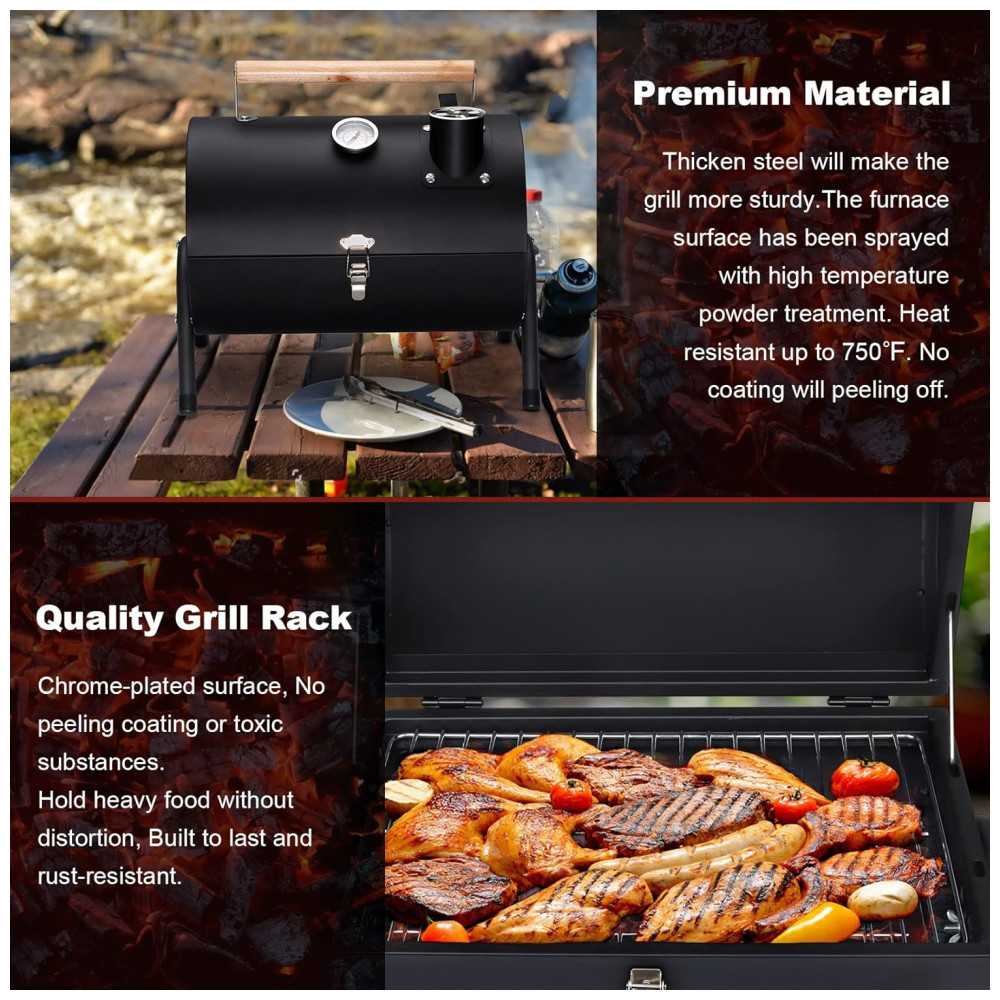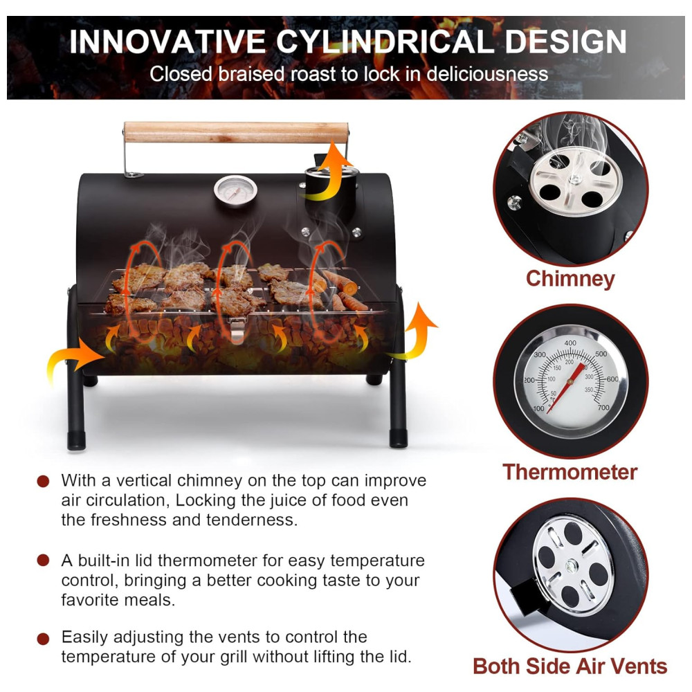 Churrasqueira a Carvão com Termômetro e Chaminé para Acampamento Ao ar Livre Joyfair Preta