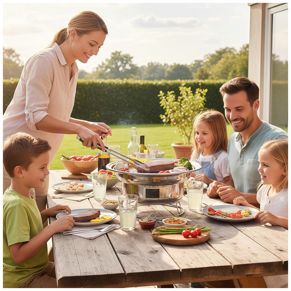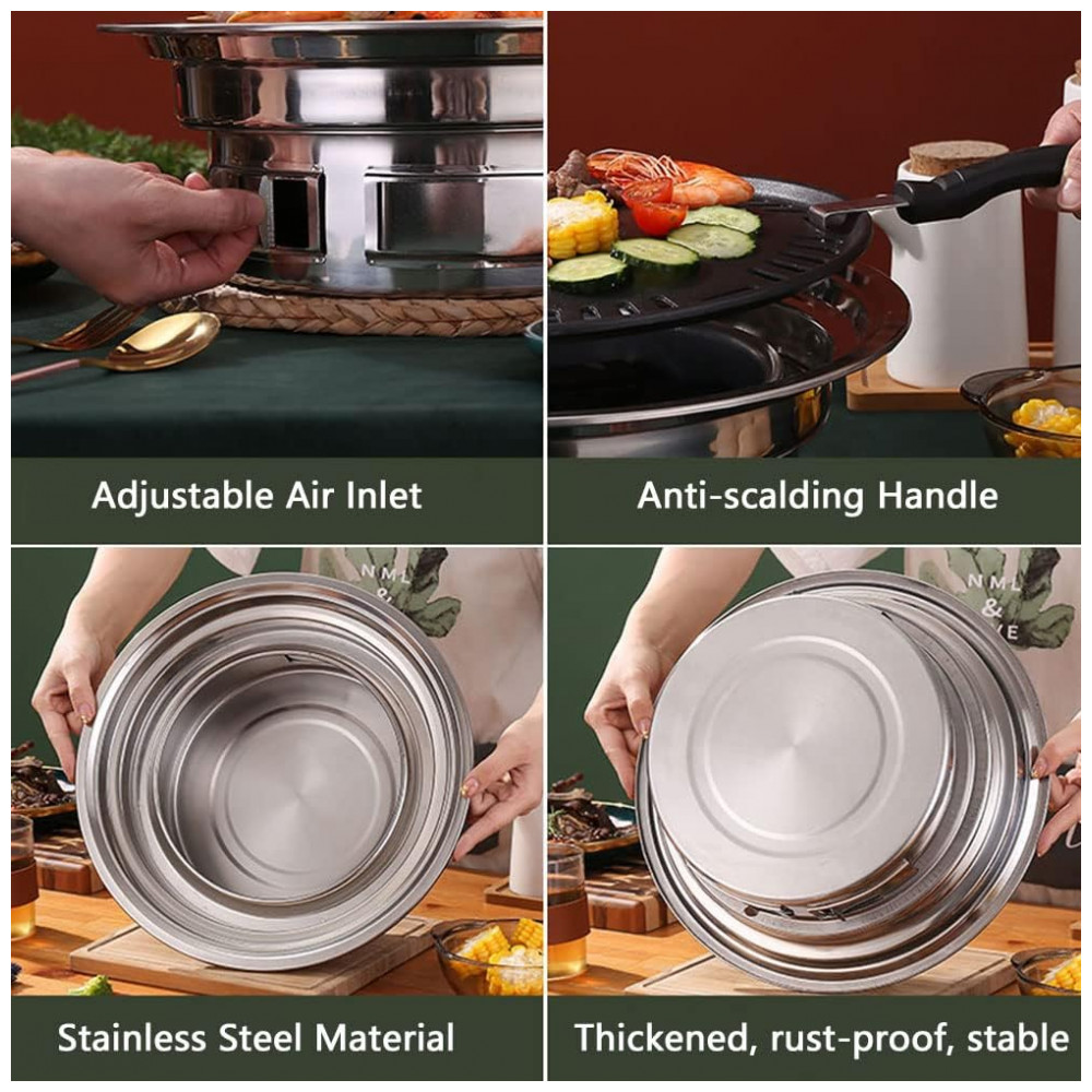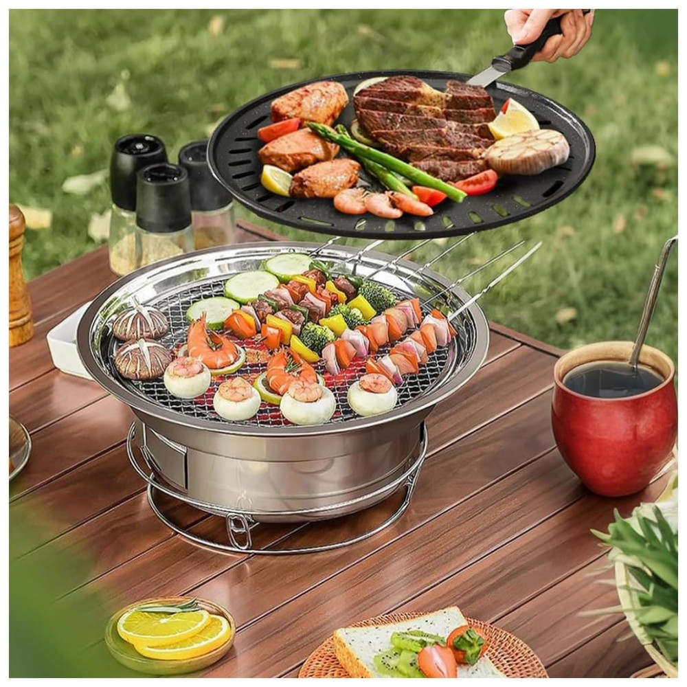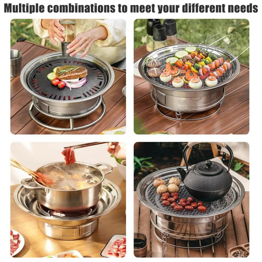 Assar conveniente Use uma assadeira ou rede para assar para torrar espetos de cordeiro, peito de frango, carne, bife, peru, milho, pimentão verde, bacon. Você também pode usar este fogão para fazer uma deliciosa sopa para a família.