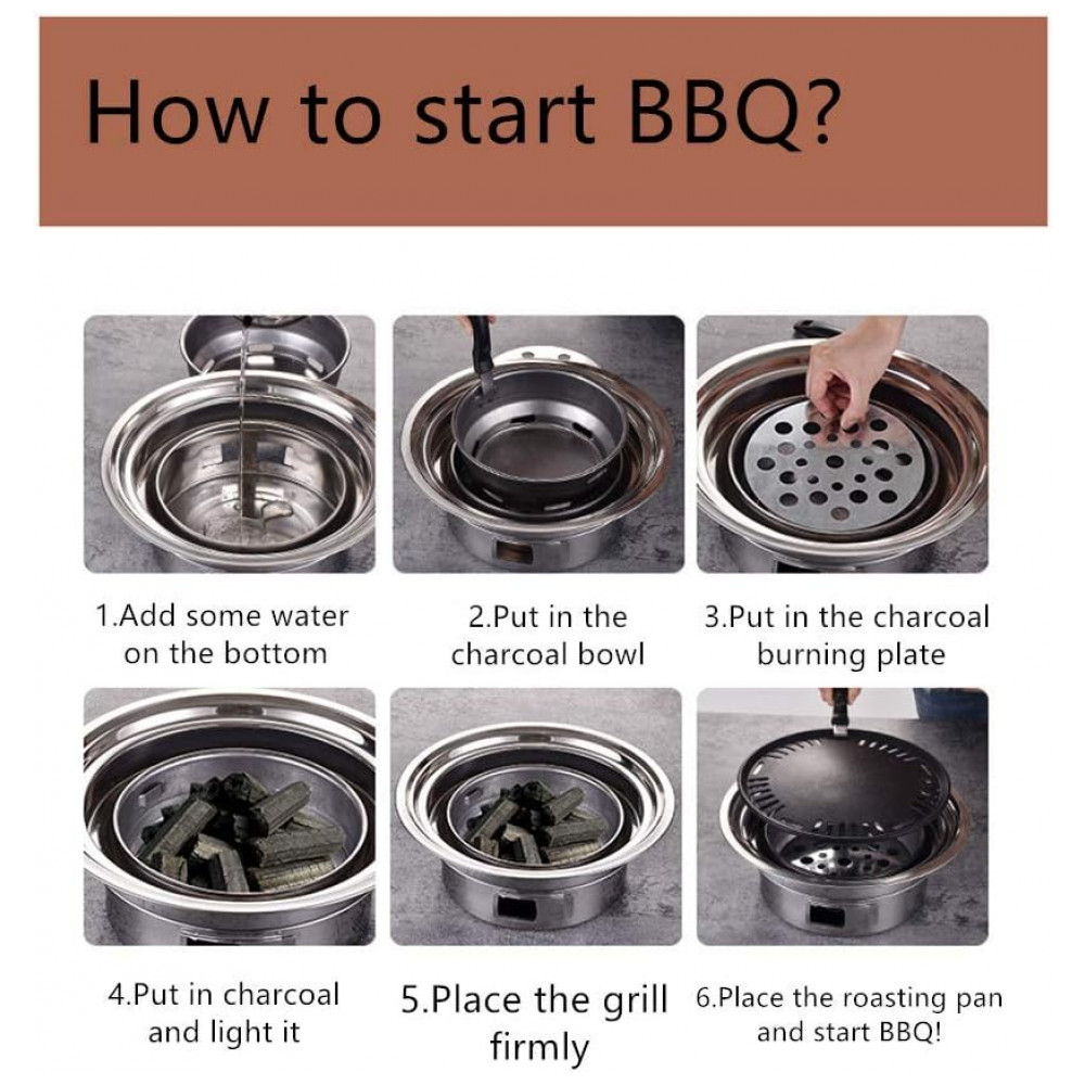 O que você obterá Corpo da grelha, tigela de carvão, placa de queima de carvão, assadeira, rede para assar, suporte de panela e cabo anti escaldante. Todas as ferramentas necessárias para churrasco estão aqui.