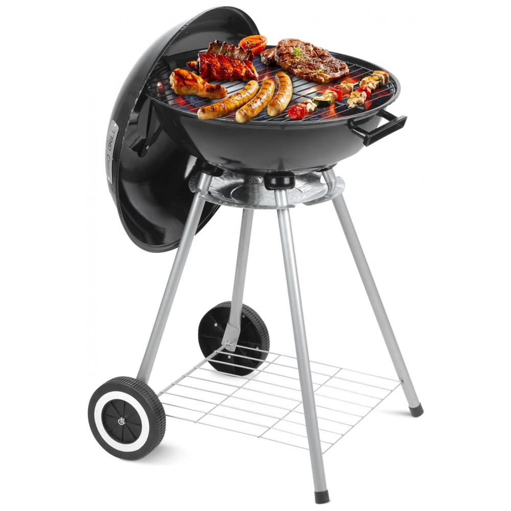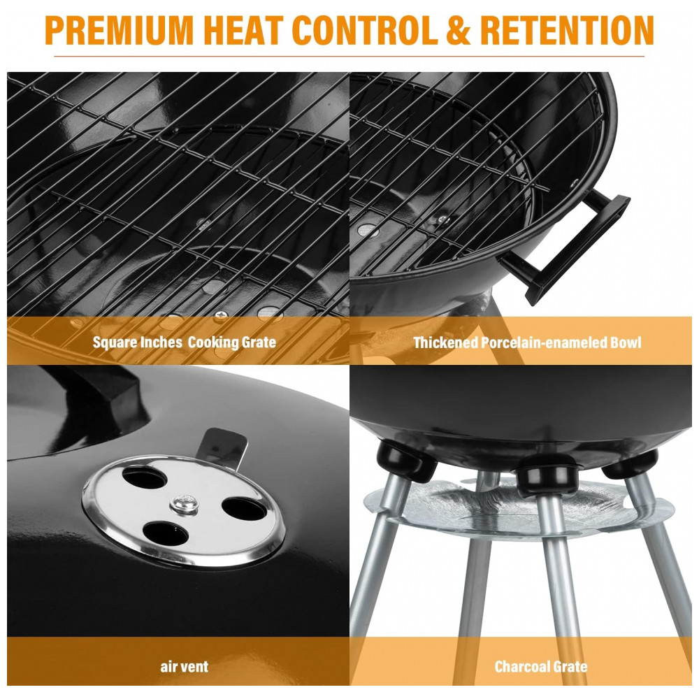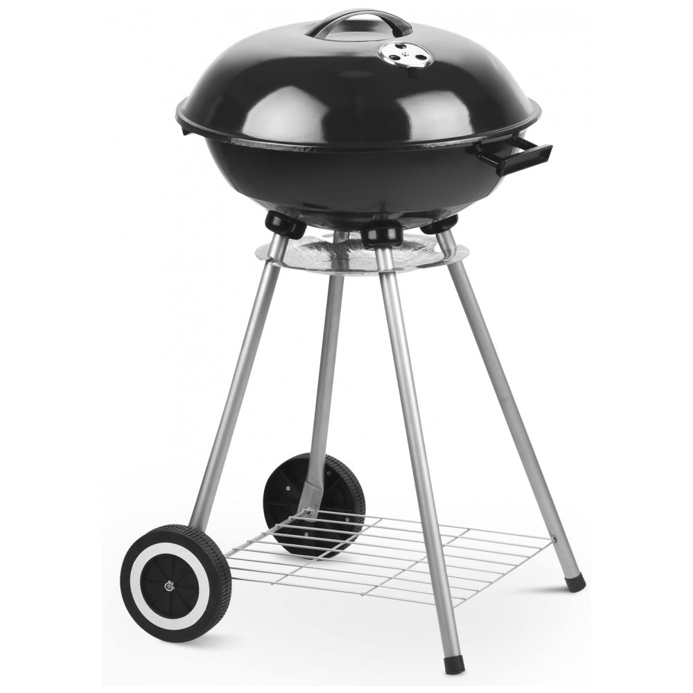 Este grelhador a carvão portátil externo tem um diâmetro de 46,99 centímetros e uma altura de 80 centímetros, o que o torna alto o suficiente para grelhar sem se curvar ou queimar. Além disso, possui um rack de zenamento na parte inferior, pernas removíveis e 2 rodas que proporcionam portabilidade conveniente para festas na bagageira, acampamentos e muito mais.