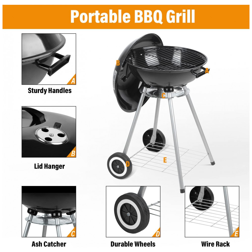 Churrasqueira a Carvão Portátil com Rodas para Cozinhar ao Ar Livre Wonlink Preta