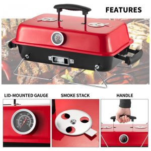 Churrasqueira a Carvão Portátil com Termômetro para até 4 Pessoas Preta