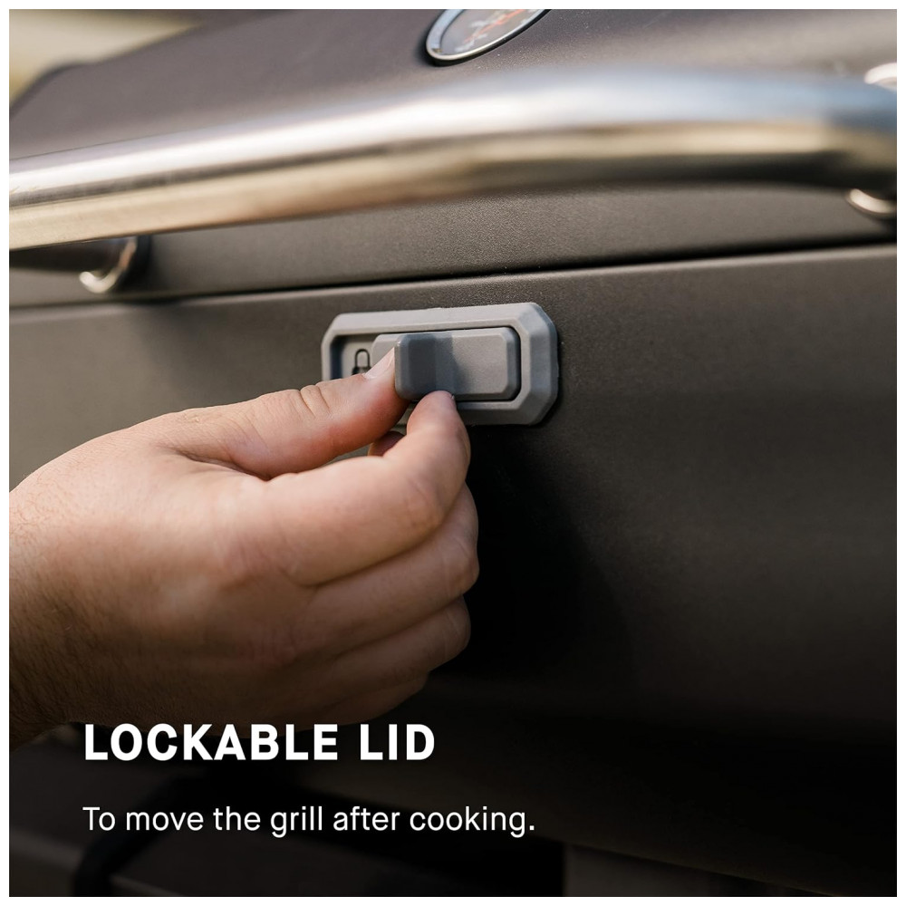 Tampa bloqueável bloqueie a tampa para mover a grelha após o cozimento sem ter que descartar as cinzas no local