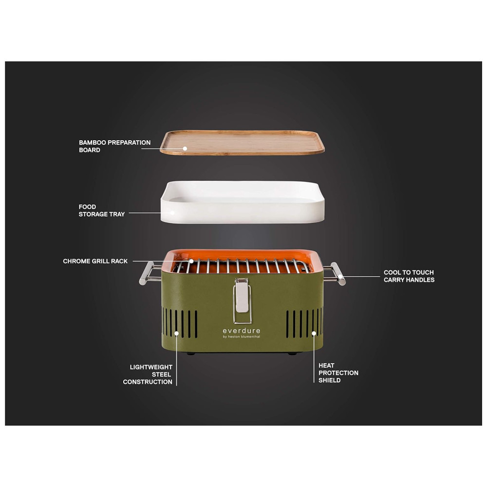 Churrasqueira á Carvão Portátil e Compacto serve até 4 Pessoas Militar EVERDURE HBCUBEKUS Verde Escuro