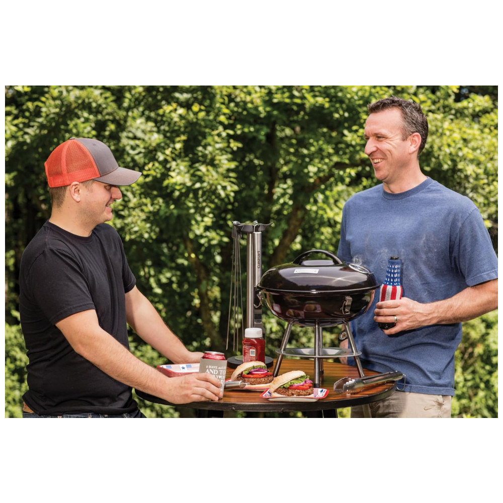 COMPACTO O SUFICIENTE PARA LEVAR EM QUALQUER LUGAR A churrasqueira mede 36 x 36 x 38 centímetros e pesa apenas 900 g, tornando a fácil de transportar e ideal para decks, pátios e varandas, camping, tailgating e muito mais.