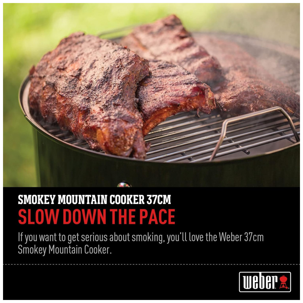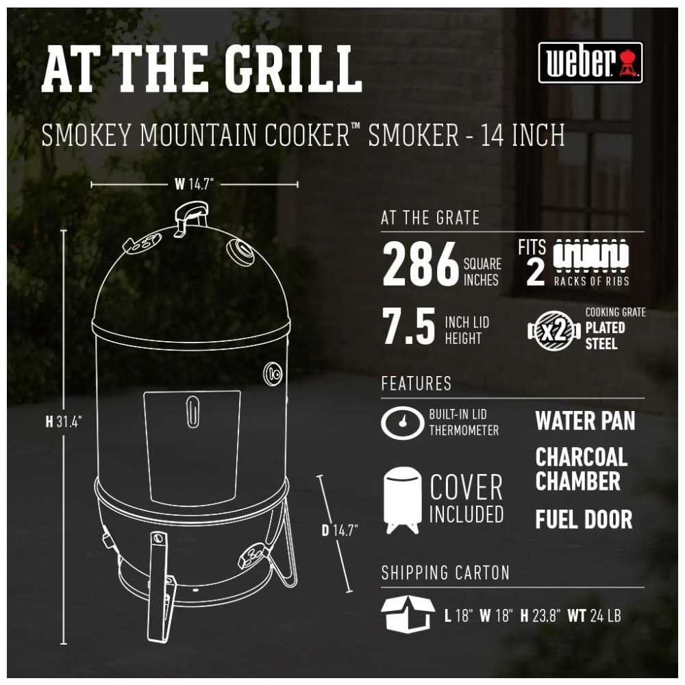 A sua compra inclui Um Fogão Smokey Mountain Weber de , Fumador de Carvão Capa