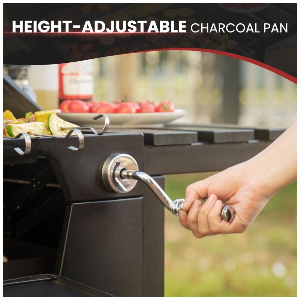 PANELA DE CARVÃO AJUSTÁVEL EM ALTURA Panela de carvão com altura regulável, que pode ajustar a temperatura durante o churrasco, garante o melhor desempenho.