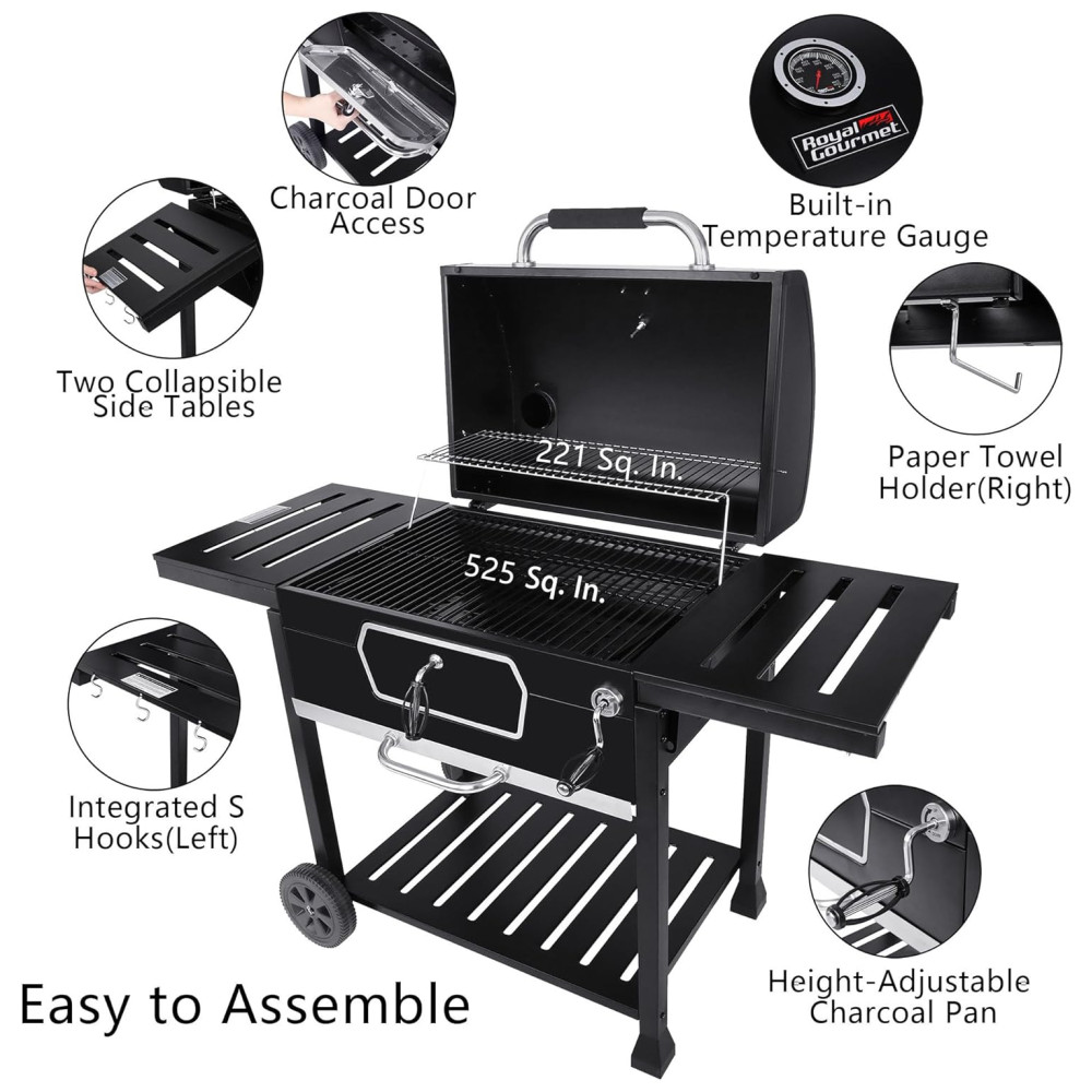 Churrasqueira a Carvão Portátil Serve até 10 Pessoas ROYAL GOURMET CD2030AN Preto