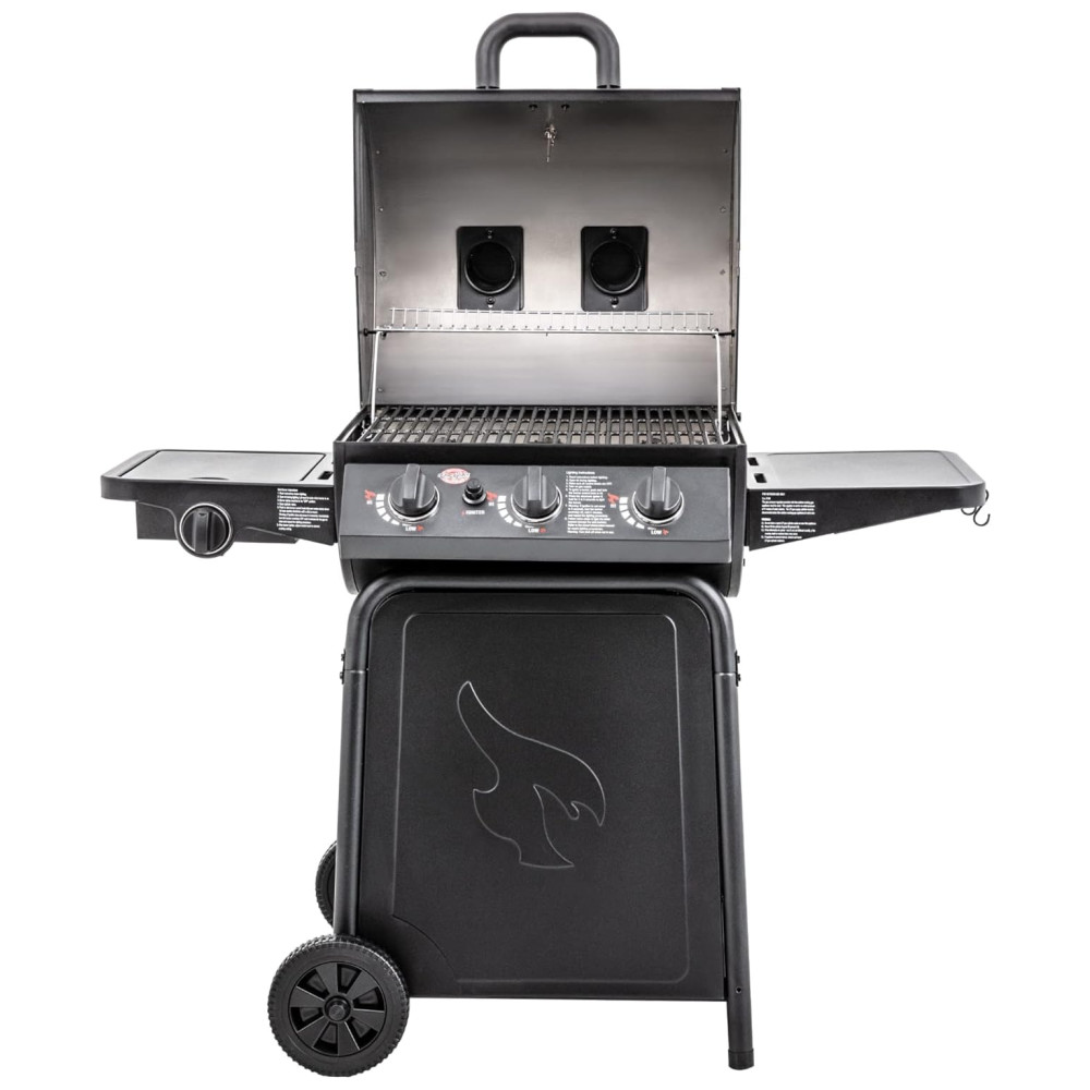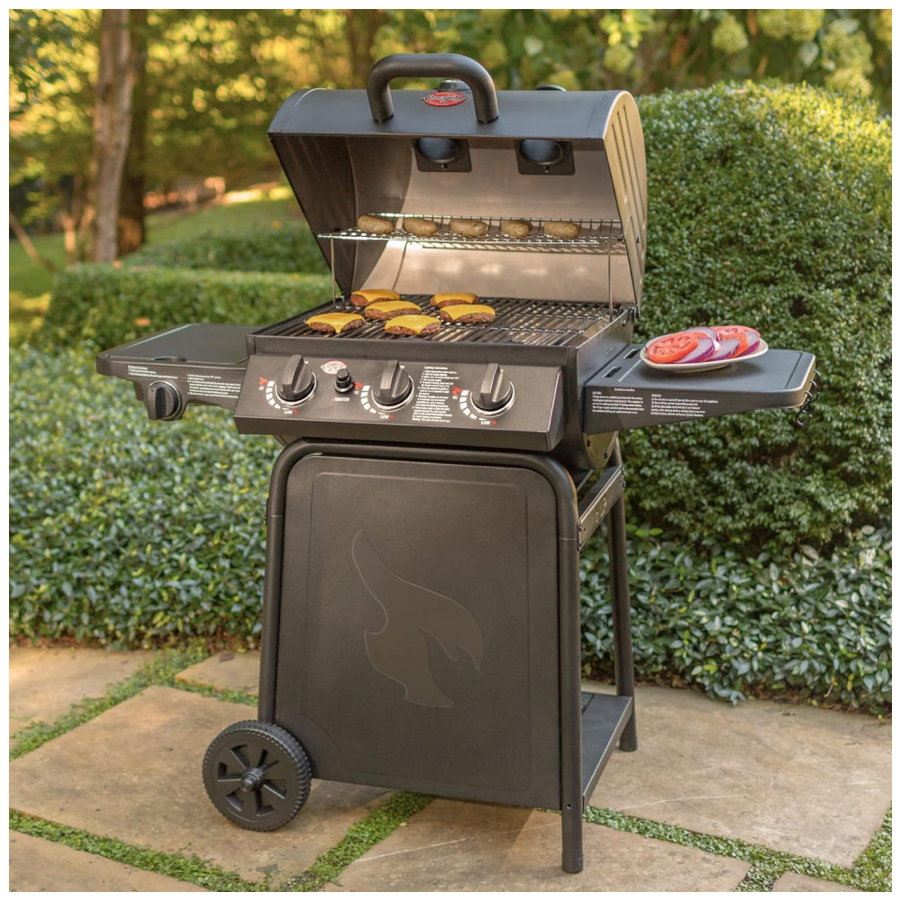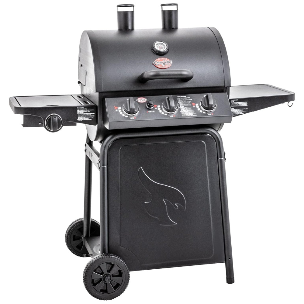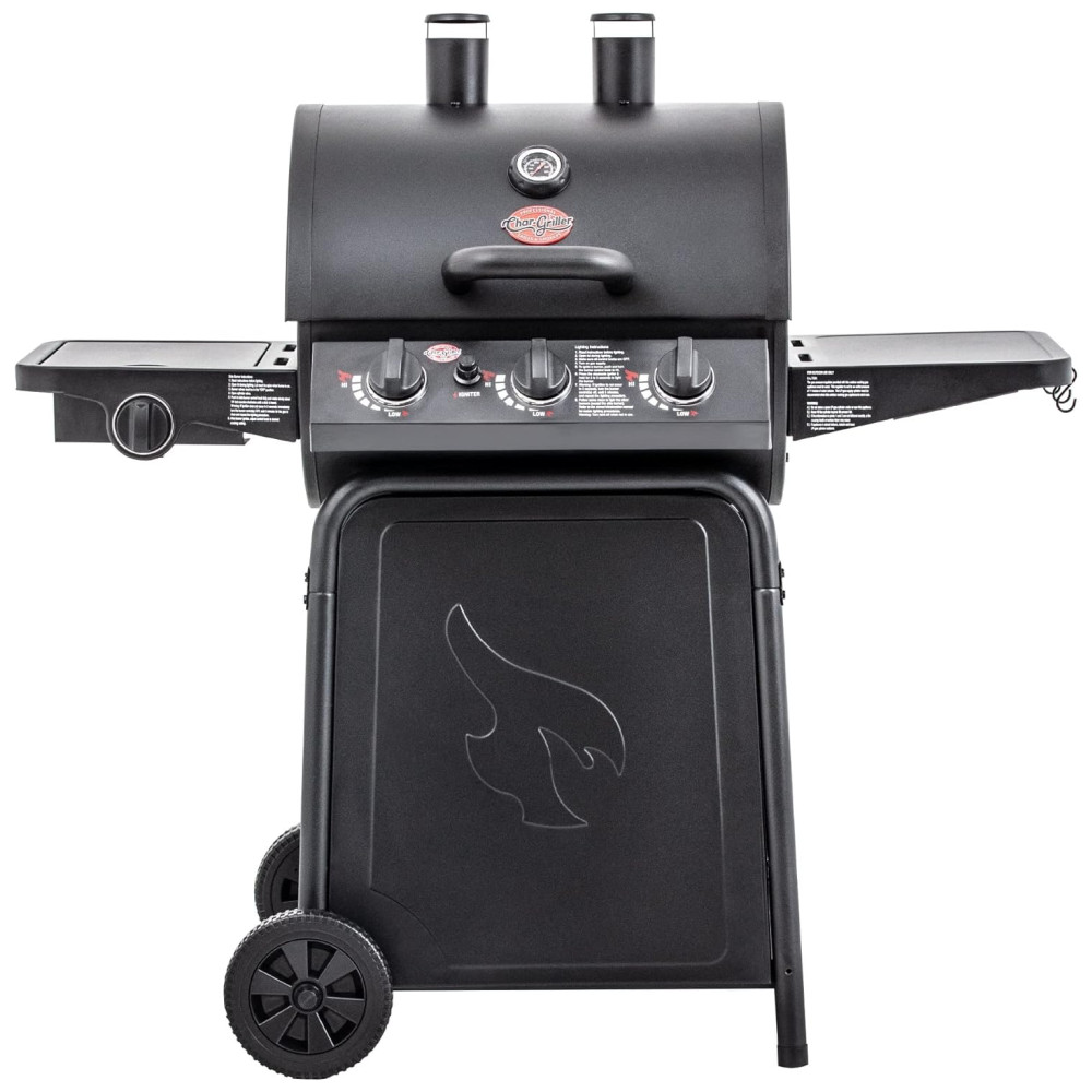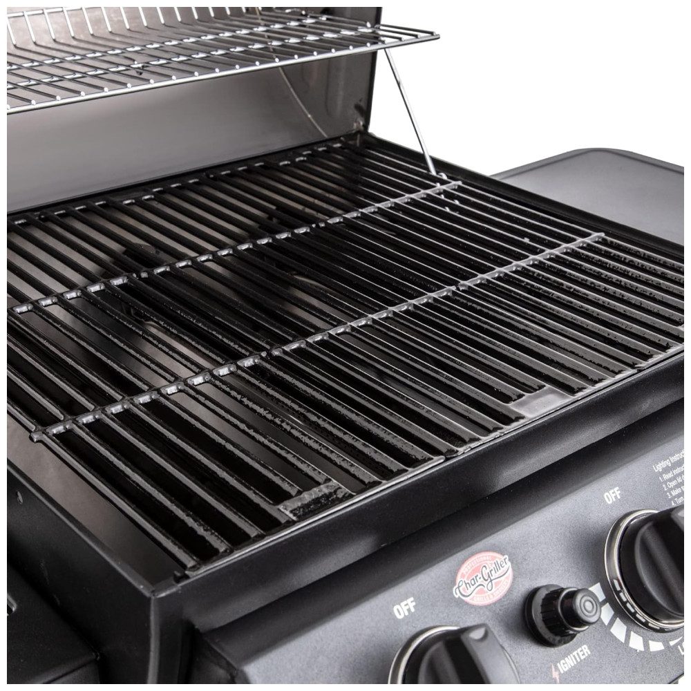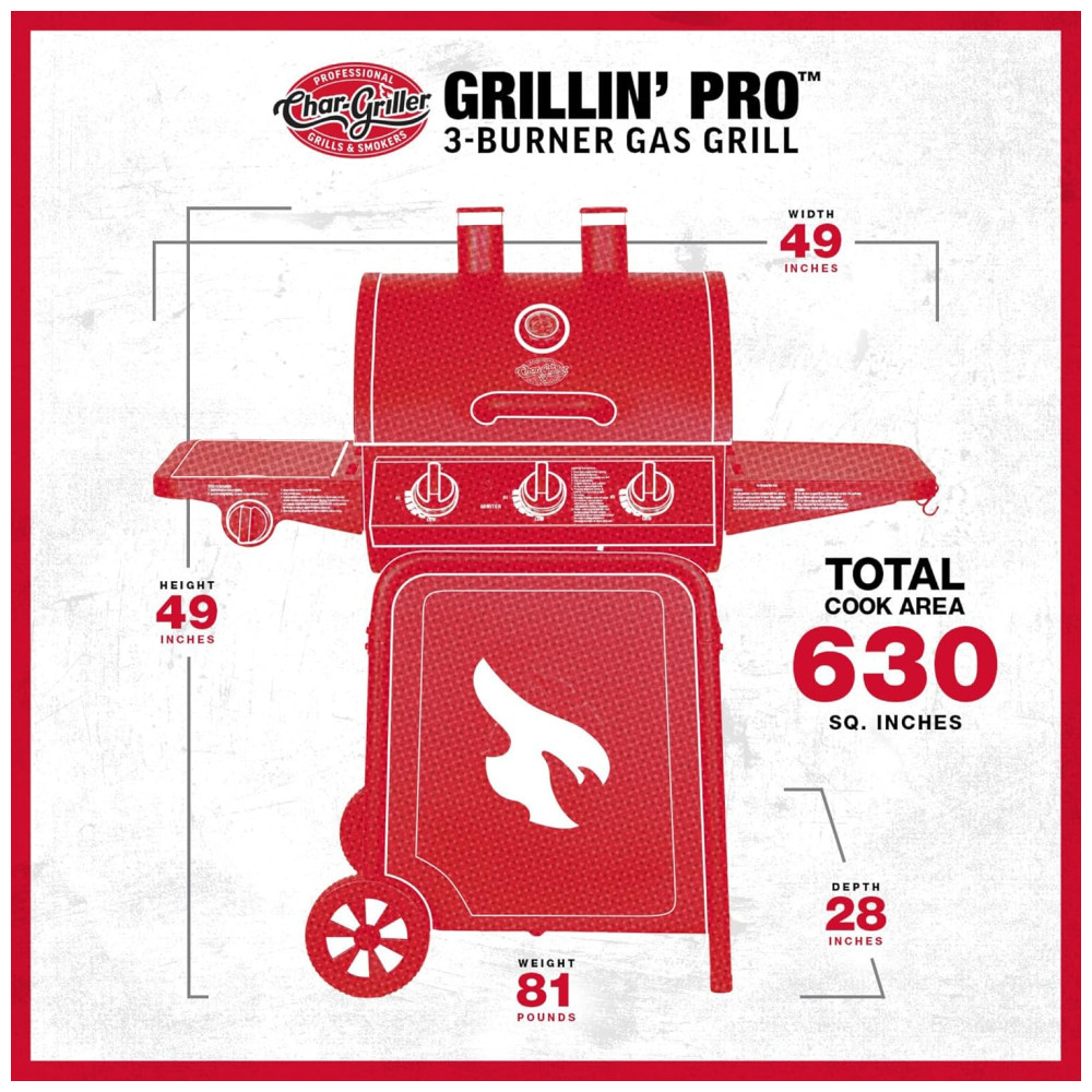 Churrasqueira a Gás Char-Griller Grillin Pro 3 Burner em Preto com 40.800 BTU Grades em Ferro Fundido e Racks de Aquecimento 630 polegadas quadradas