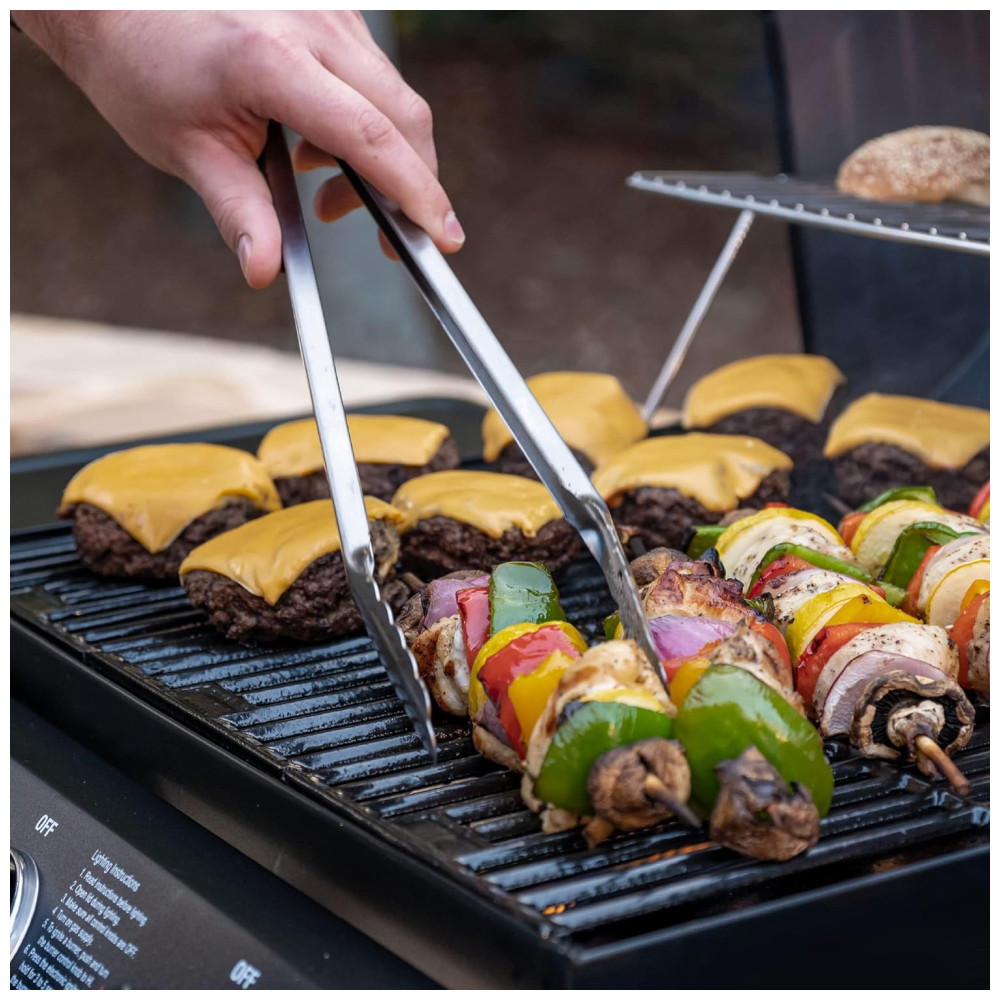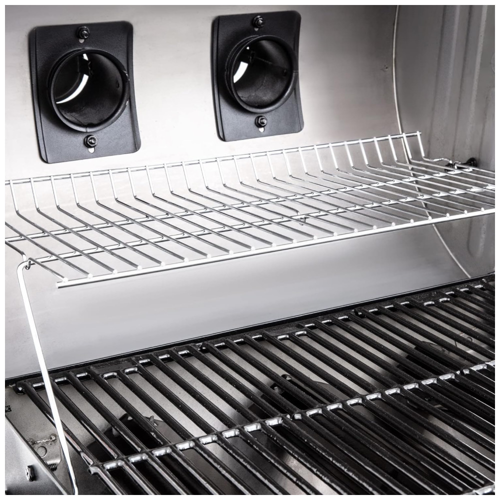 A churrasqueira a gás Char-Griller E3001 Grillin Pro oferece um amplo espaço de 438 polegadas quadradas para grelhados a gás na superfície principal e 192 polegadas quadradas na prateleira de aquecimento. Três tubos queimadores de aço inoxidável geram um total de 40.800 BTUs, com um queimador lateral de 12.000 BTUs. Construída em aço resistente, possui grades de ferro fundido esmaltadas, dois dutos para aquecimento uniforme, termômetro de aço inoxidável, cabo da tampa Stay Cool e acendedor eletrônico em cada queimador. Esta churrasqueira a gás premium de 40.800 BTU com 3 queimadores e queimador lateral de 12.000 BTU torna o churrasco excepcional em casa fácil. Três queimadores com reguladores independentes proporcionam calor contínuo e equilibrado em toda a área de grelhados. Com uma grande área de cozimento de 630 polegadas quadradas, oferece um ótimo sabor e aroma de churrasco, com 438 polegadas quadradas para grelhados e 192 polegadas quadradas na prateleira de aquecimento. Sua estrutura durável em aço tubular, com dois dutos de fumaça para melhor ventilação, e termômetro de churrasco em aço inoxidável. Possui grades de cozimento espessas em ferro fundido esmaltado para alta retenção de calor, prateleira de aquecimento, rodas grandes para fácil transporte e área de trabalho lateral com ganchos para utensílios de churrasco. O design elegante da churrasqueira a gás Char-Griller em preto estilo barril com dutos de fumaça é uma adição bem-vinda a qualquer quintal. Fácil de limpar, com bandeja de gordura removível após o churrasco. Possui acendedores eletrônicos para cada queimador, garantindo que sua churrasqueira a gás inicie facilmente com o toque de um botão. Acessórios incluem a capa para churrasqueira Char-Griller 3055 para 3 queimadores e o raspador de grelha para churrasco 9305. DIMENSÕES: 122cm x 71cm x 122cm, 40kg.