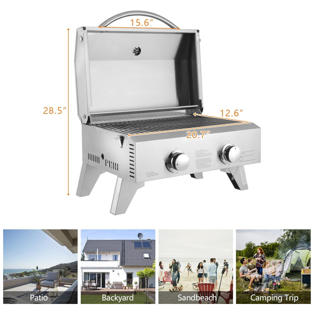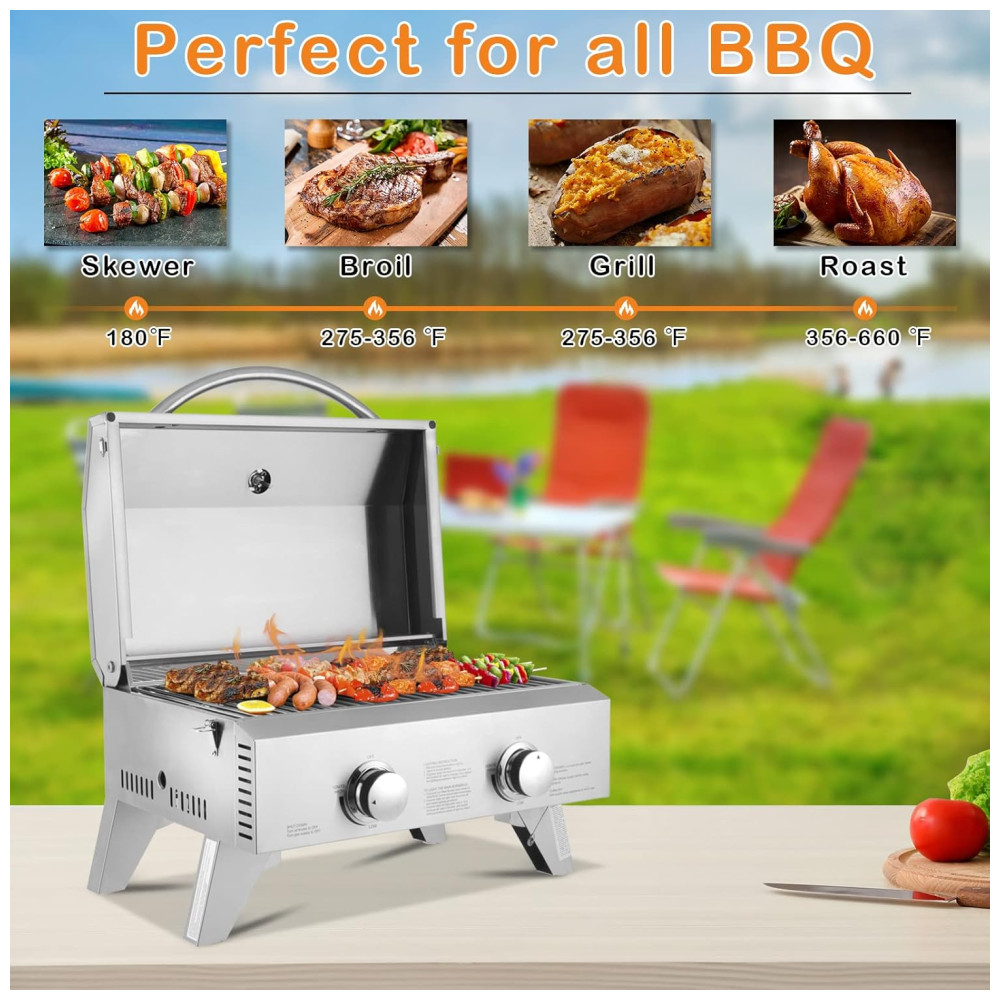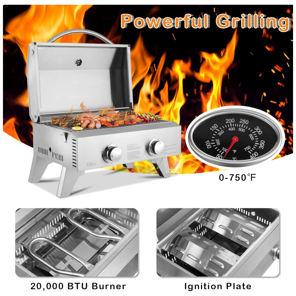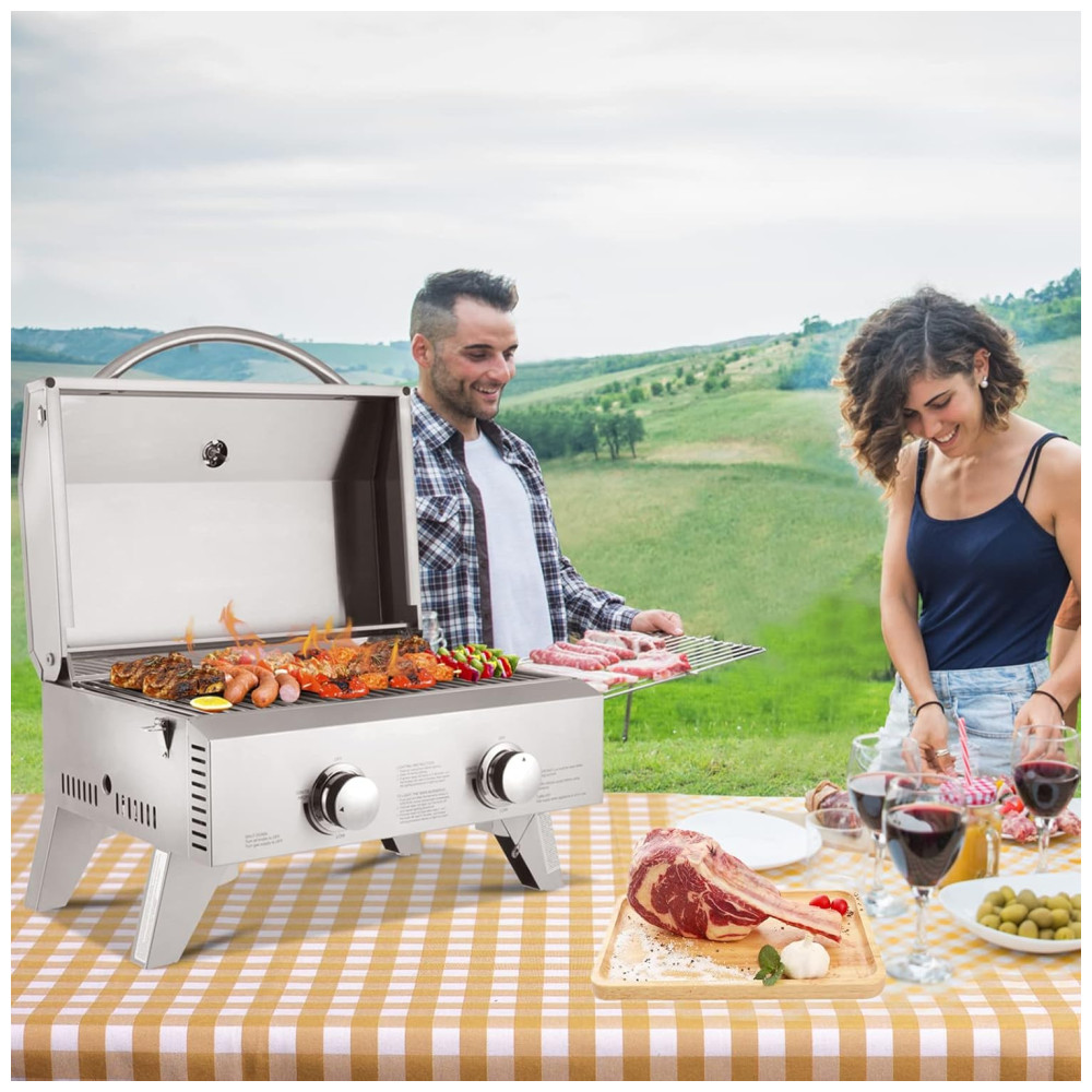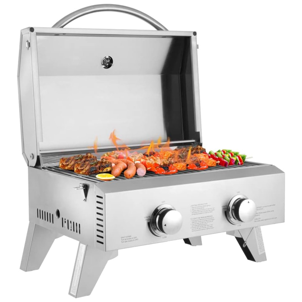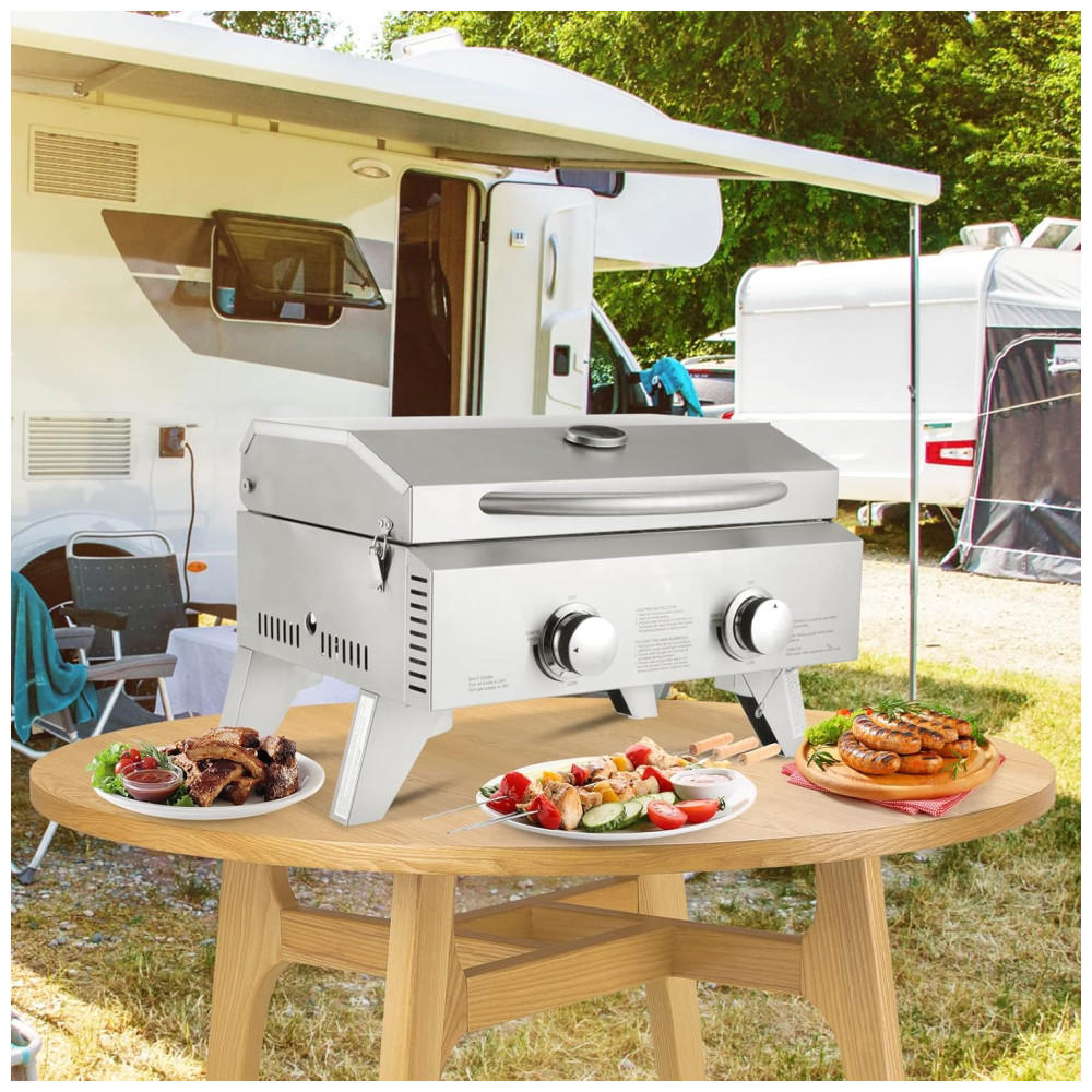 Churrasqueira a Gás Portátil com 2 Queimadores 22000 BTU ROVSUN Prateado