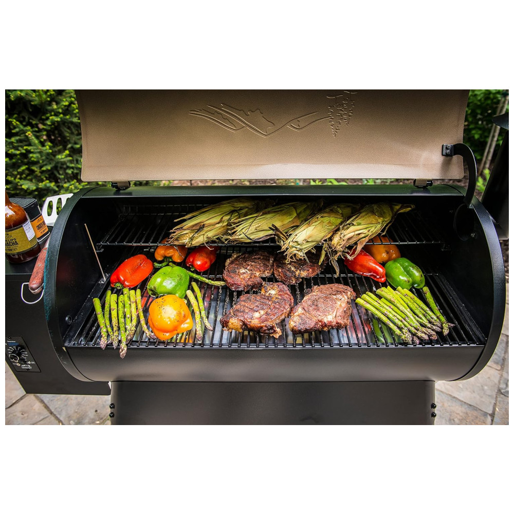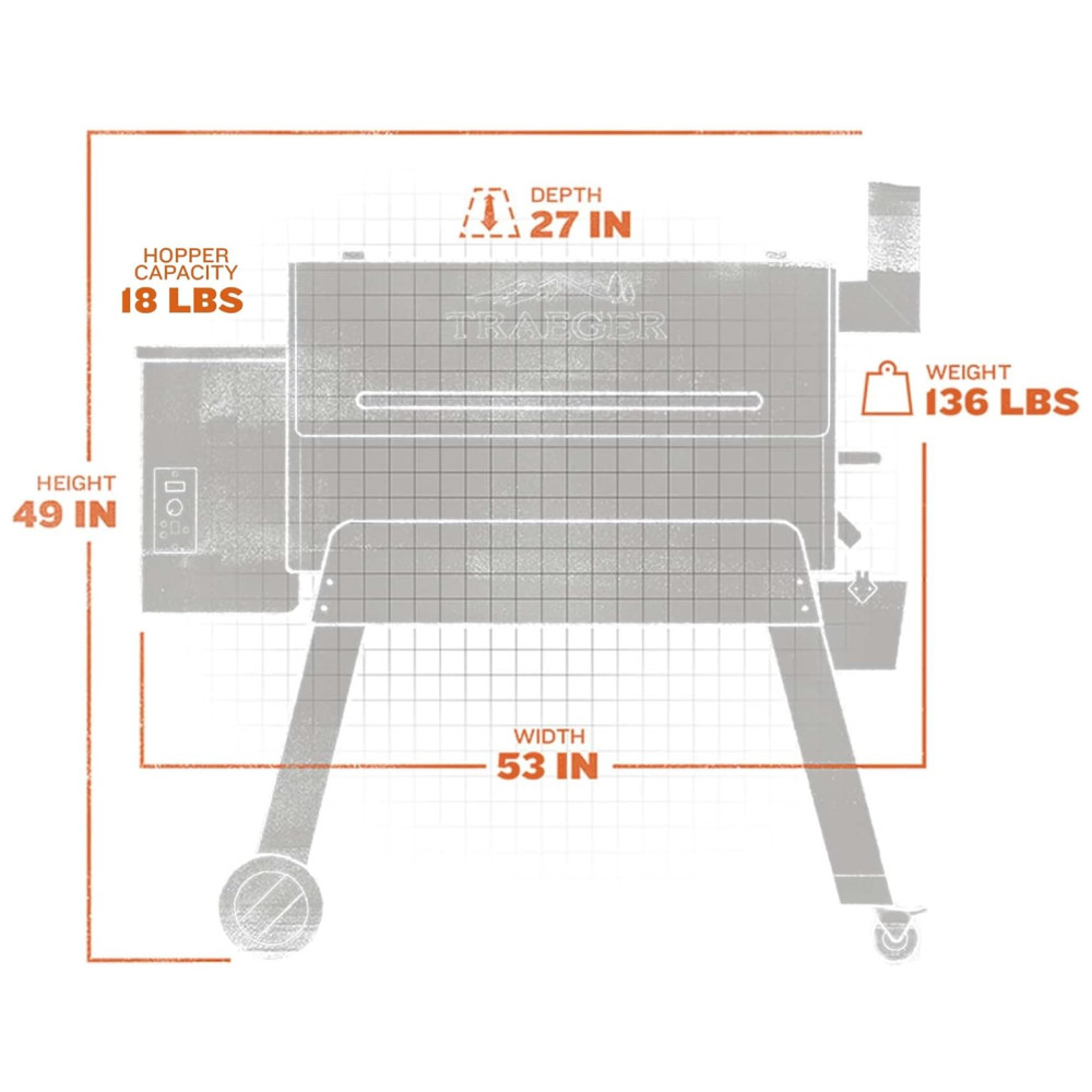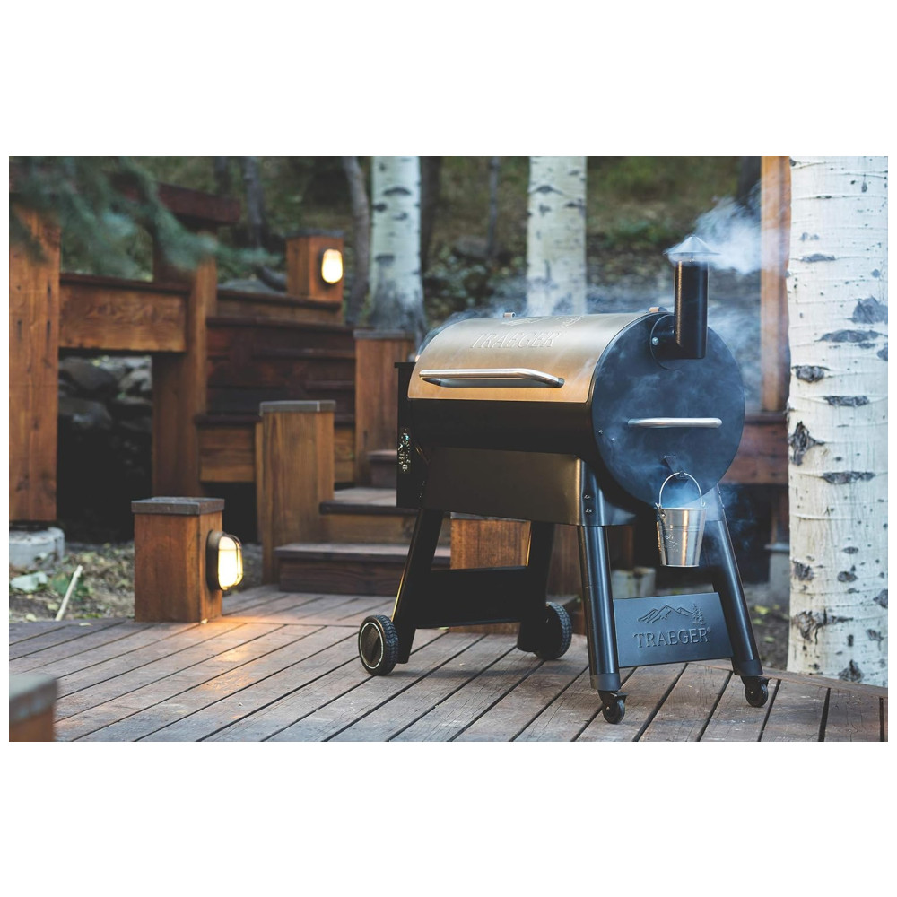 Churrasqueira á Pellet de Madeira 6 em 1 com Controle de temperatura de Precisão e Superfície de Cozimento Total 5703 cm2 Traeger Série Pro 34 Bronze