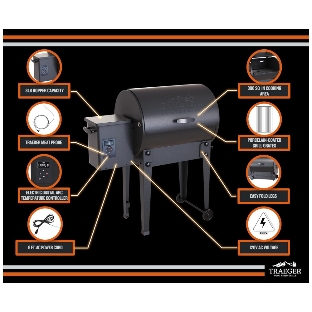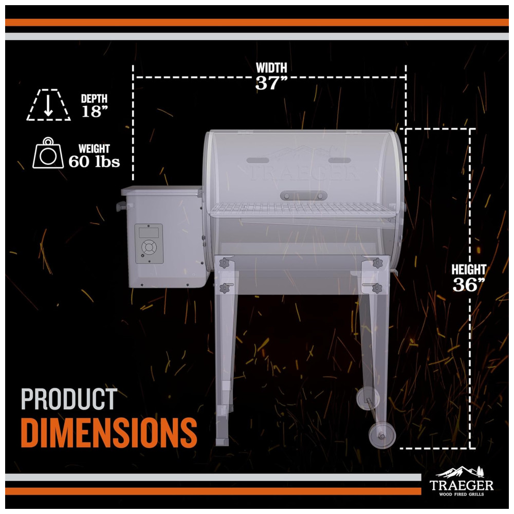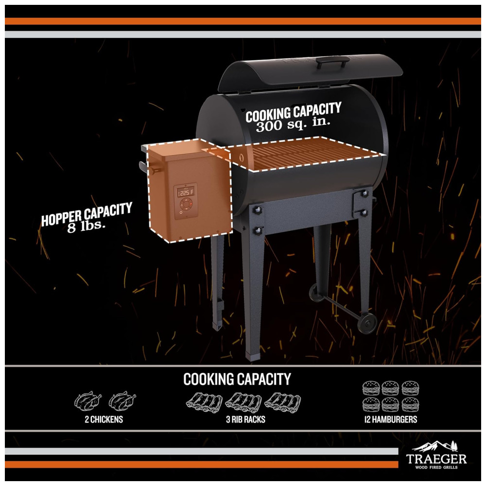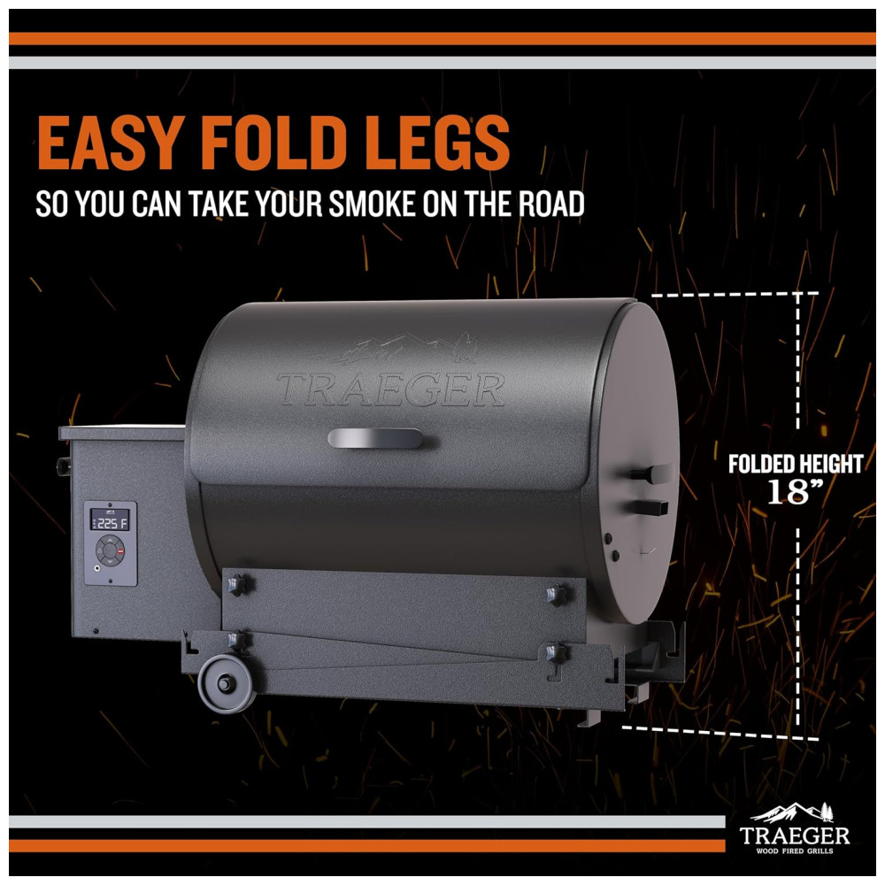 Esse grelhador utiliza pellets de madeira como combustível, o que proporciona o sabor do forno a lenha. Com uma capacidade de 1935 cm2, é possível grelhar até 12 hambúrgueres, 3 prateleiras de costelas ou 2 frangos inteiros. O Tailgater é versátil, permitindo grelhar, defumar, refogar, assar, assar ou fazer churrasco. É ideal para festas antes do jogo, fins de semana na cabana ou onde quer que suas viagens o levem.