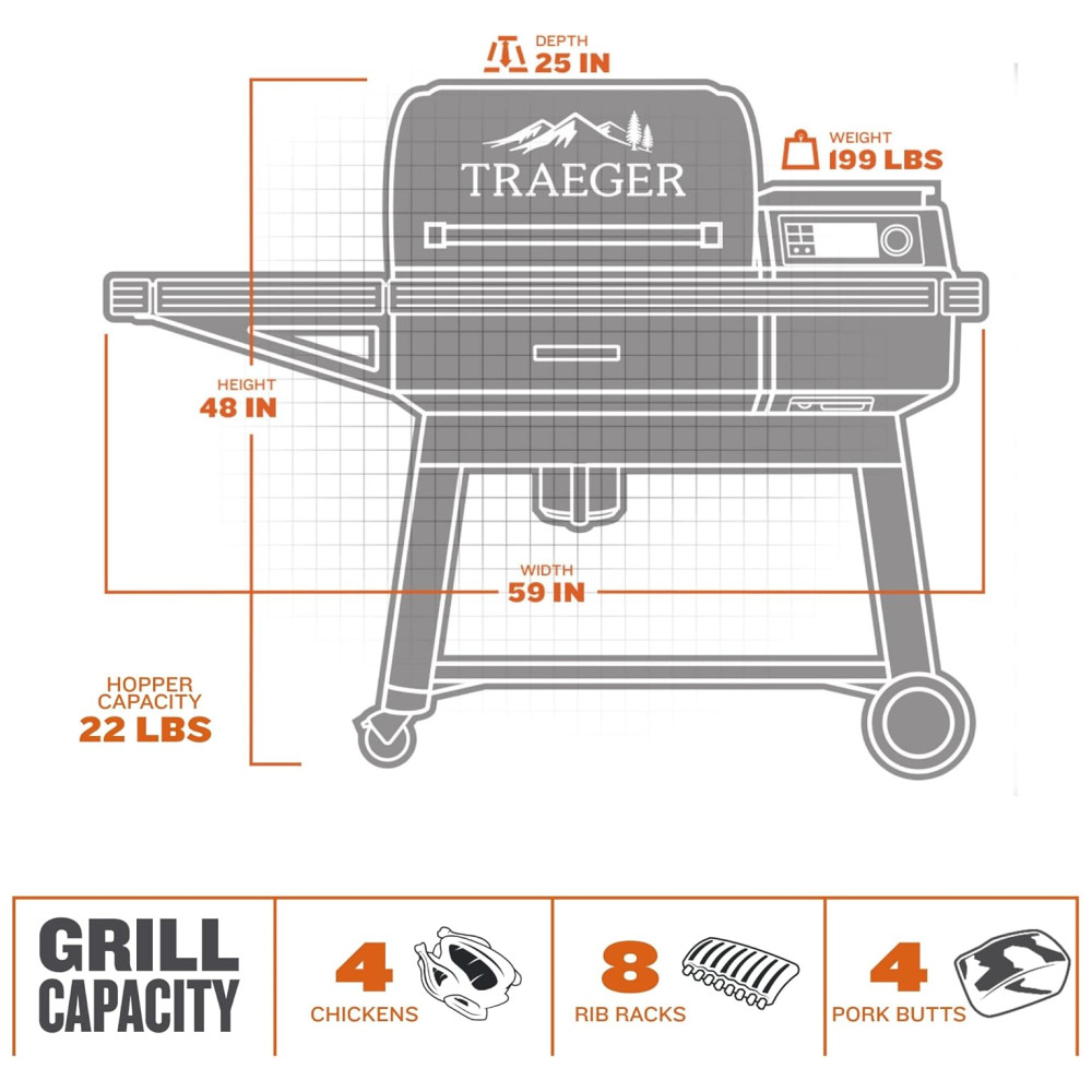 Churrasqueira á Pellet de Madeira com Controle por App WI-FI e Superfície de Cozimento Total 3974 cm2 Traeger Preta