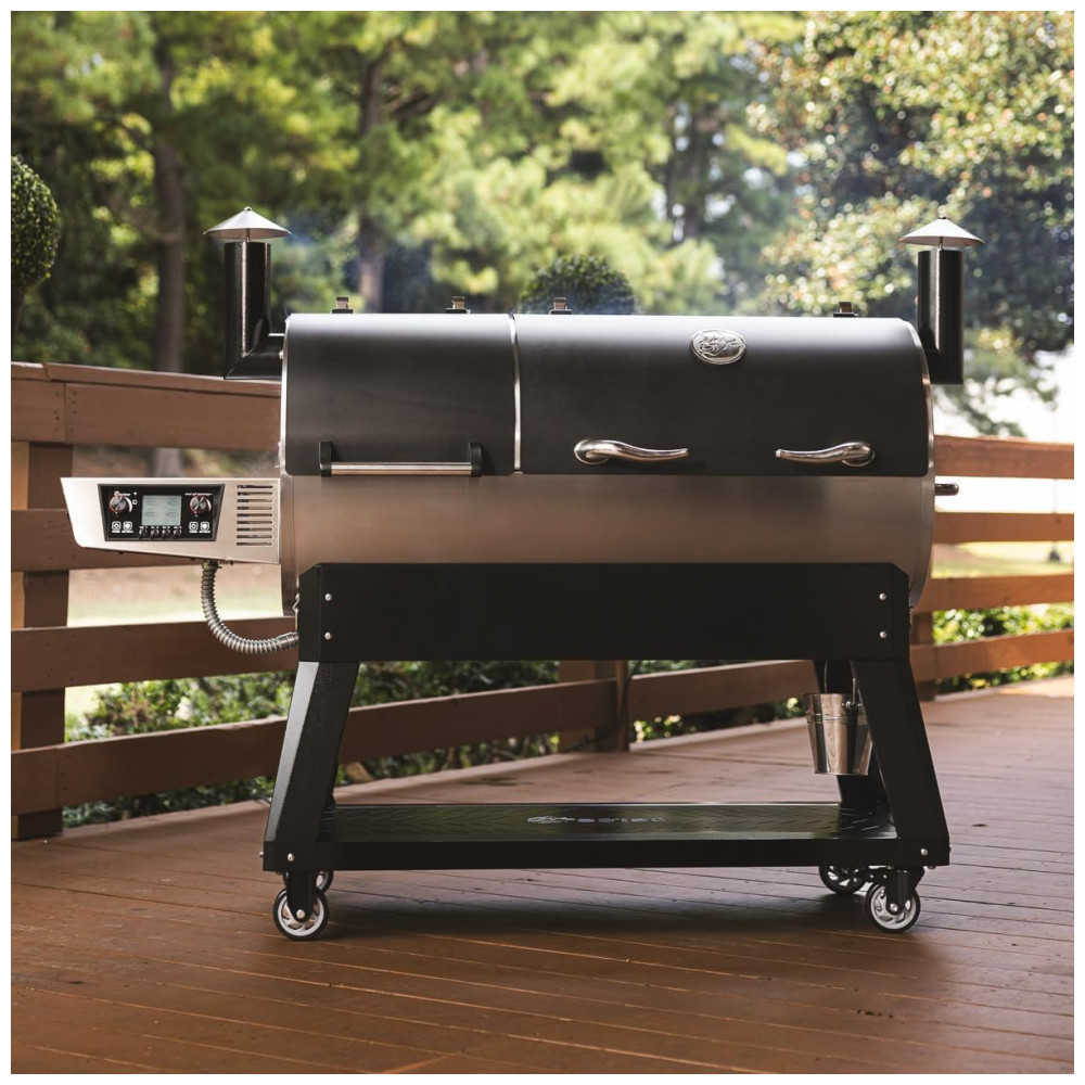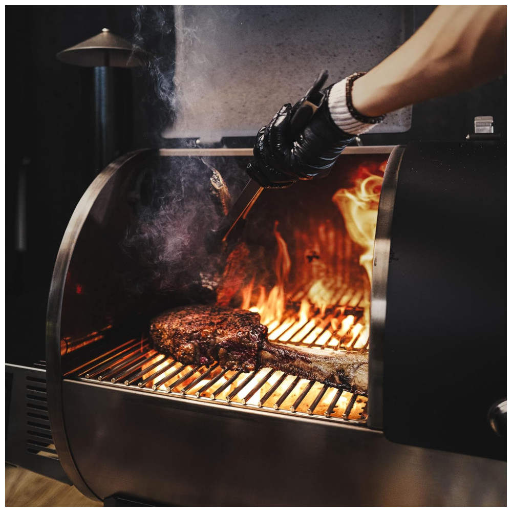 Com o Grill de Câmara Dupla, você pode fumar, grelhar, selar, assar, refogar e desidratar seus alimentos com a opção de escolher calor direto ou indireto, ou ambos simultaneamente, para obter um sabor incrível de lenha. Com duas câmaras de cozimento, você tem possibilidades infinitas para cozinhar em qualquer temperatura, atingindo 80 a 370ºC no lado direito para Calor Indireto, enquanto utiliza 120 a 370ºC no lado esquerdo para Cozimento com Calor Direto.