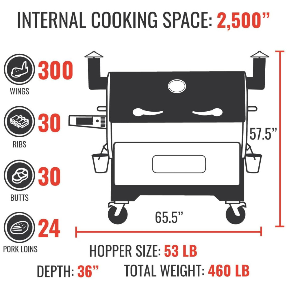 Além disso, conta com controle de temperatura PID e recursos digitais por meio do aplicativo recteq. O RT2500 BFG vem acompanhado de duas sondas de carne, capacidade de funil de 24,04 quilos, três racks para maior versatilidade, luzes internas duplas e todas as ferramentas necessárias para a montagem, além de um manual de montagem do proprietário digital.