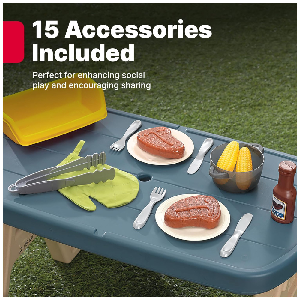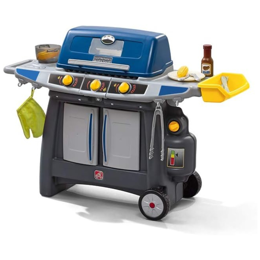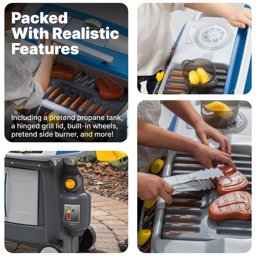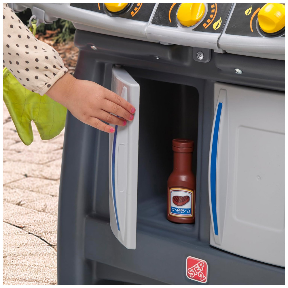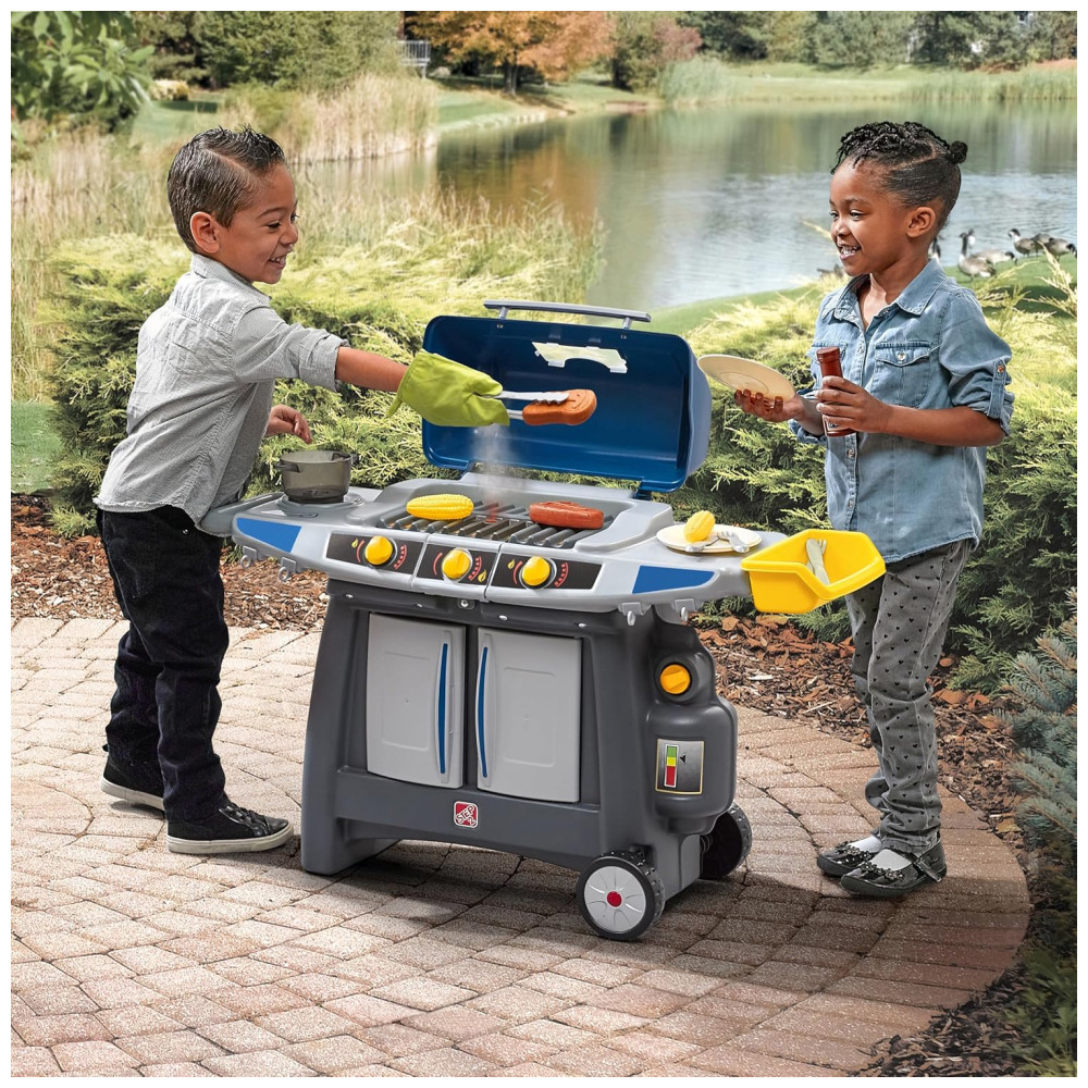 Churrasqueira de Brinquedo Interativa Infantil Externa e Interna Inclui 15 Acessórios 3 Anos ou Mais Step2 Azul e Cinza