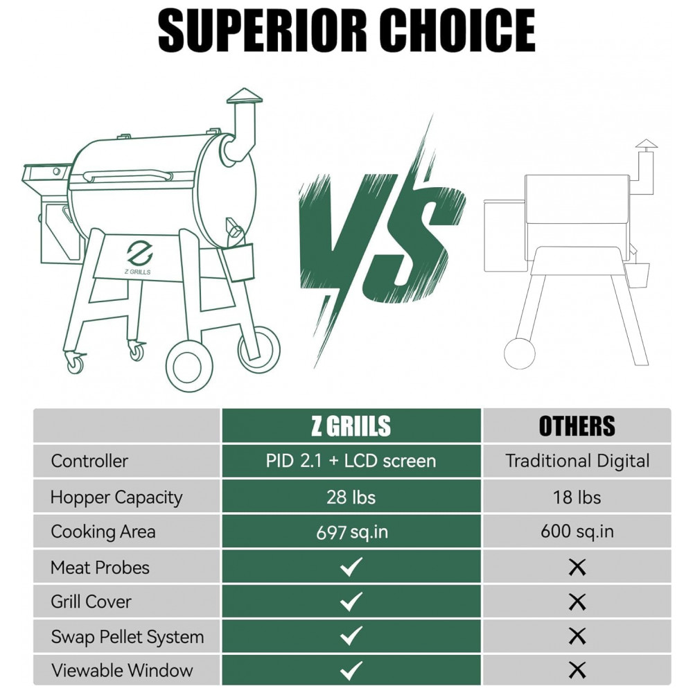 Churrasqueira Defumador a Pellets com Controlador PID 2.0 e Sondas de Carne Inclui Capa Protetora Z Grills