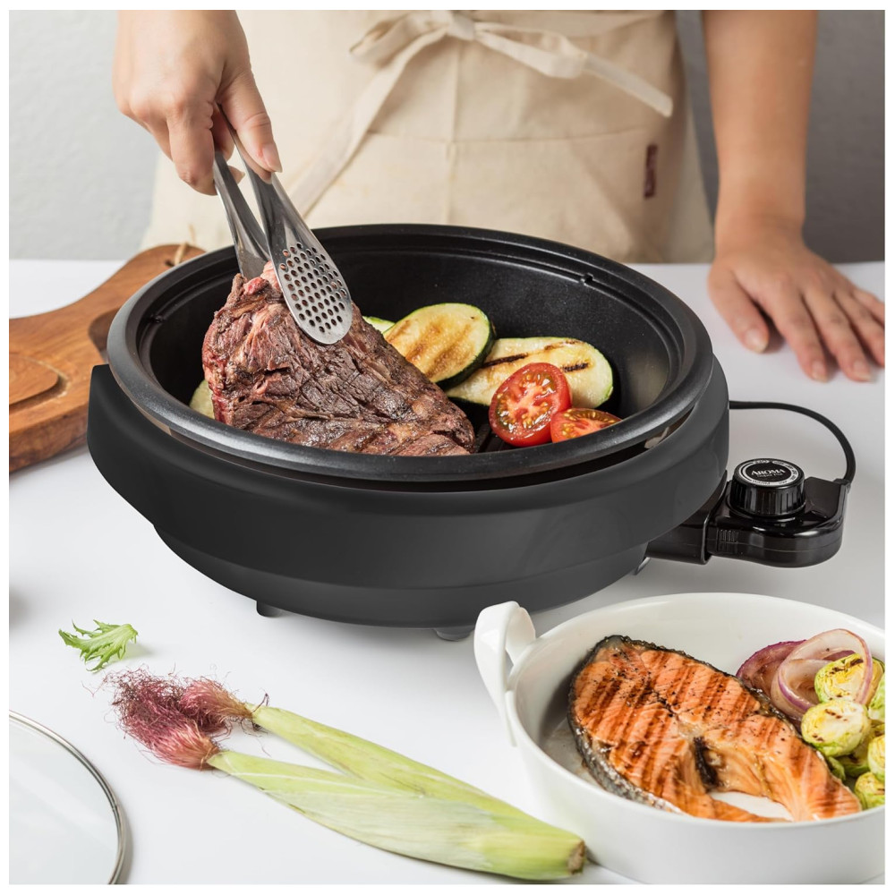 Churrasqueira Elétrica 3 em 1 Portátil 1200W 110v AROMA HOUSEWARES ASP 137B Preto