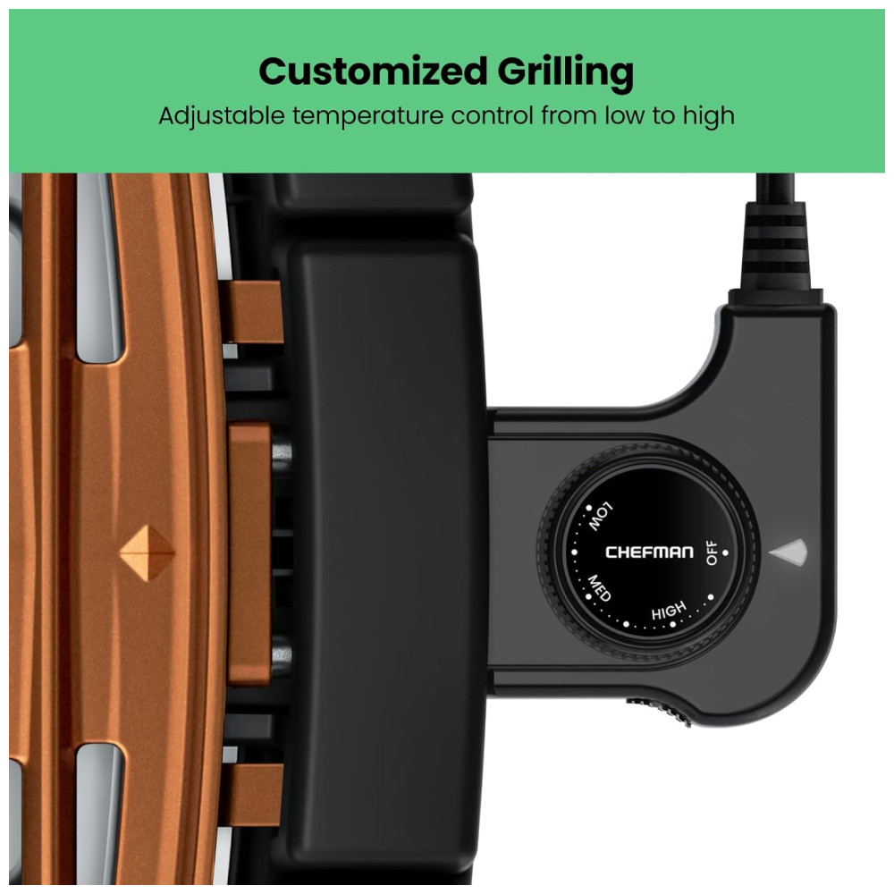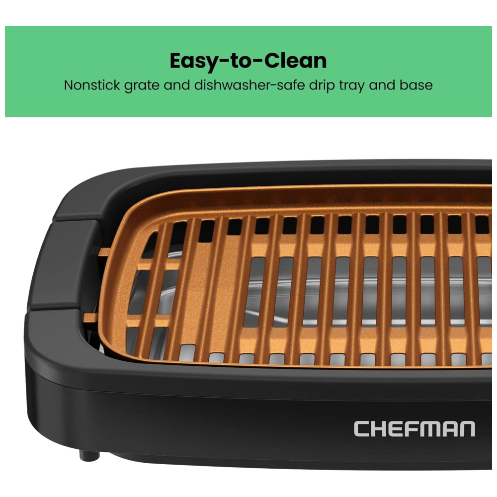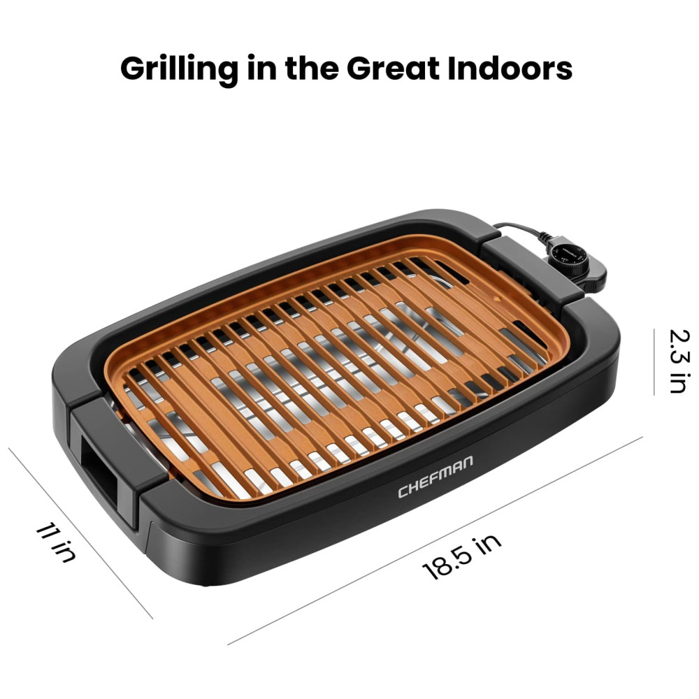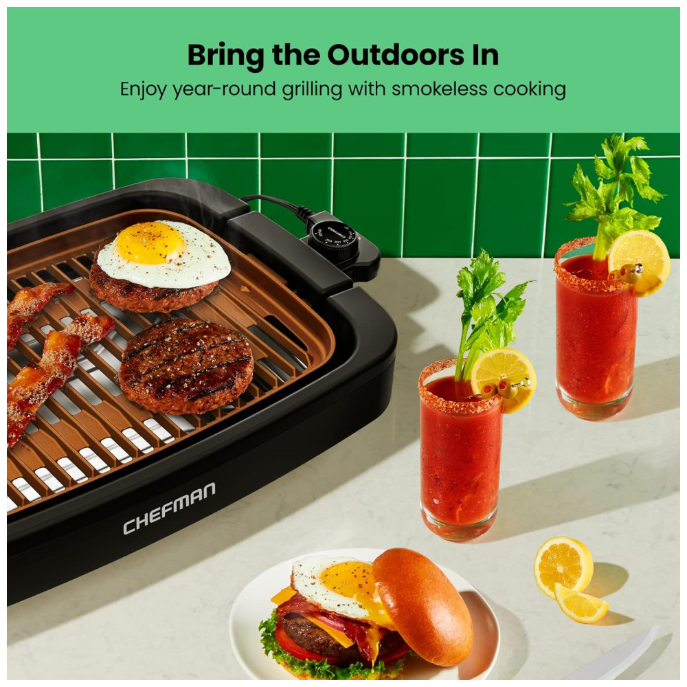 Churrasqueira Elétrica Chefman Sem Fumaça Cobre Extra Grande Antiaderente com Controle de Temperatura.