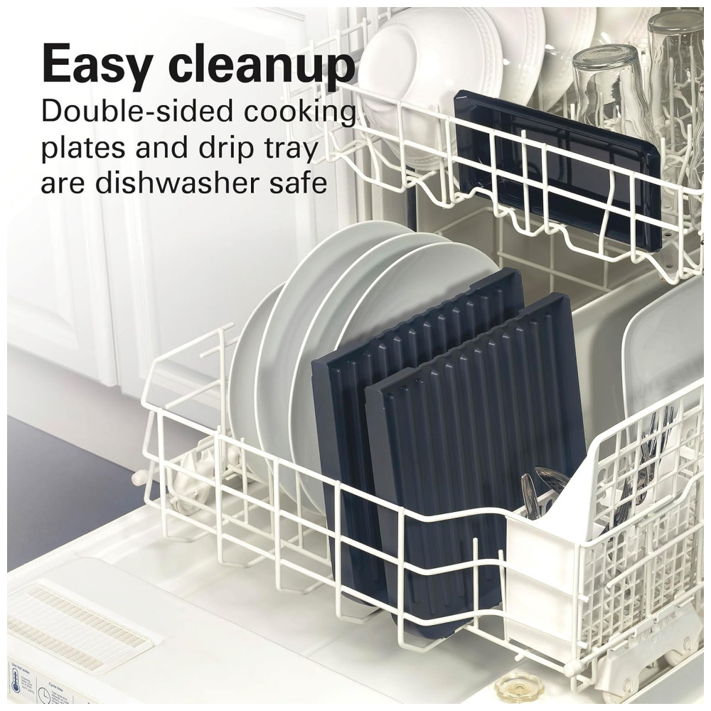 Fácil de limpar as placas antiaderentes livres de Pfoa e a bandeja coletora são removíveis para uma limpeza fácil e segura para máquina de lavar louça