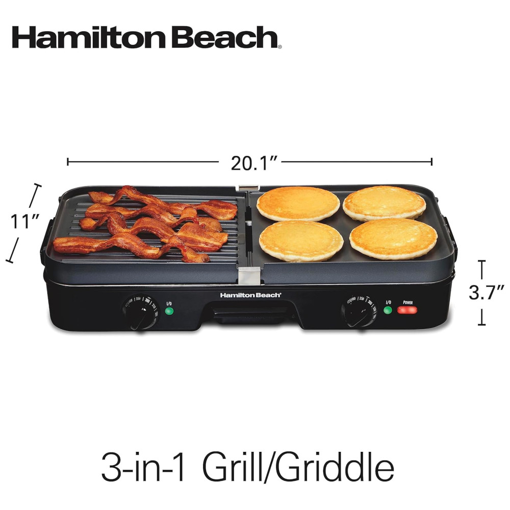 Churrasqueira elétrica grelha 8 porções placas antiaderentes reversíveil HAMILTON BEACH 38546 Preto
