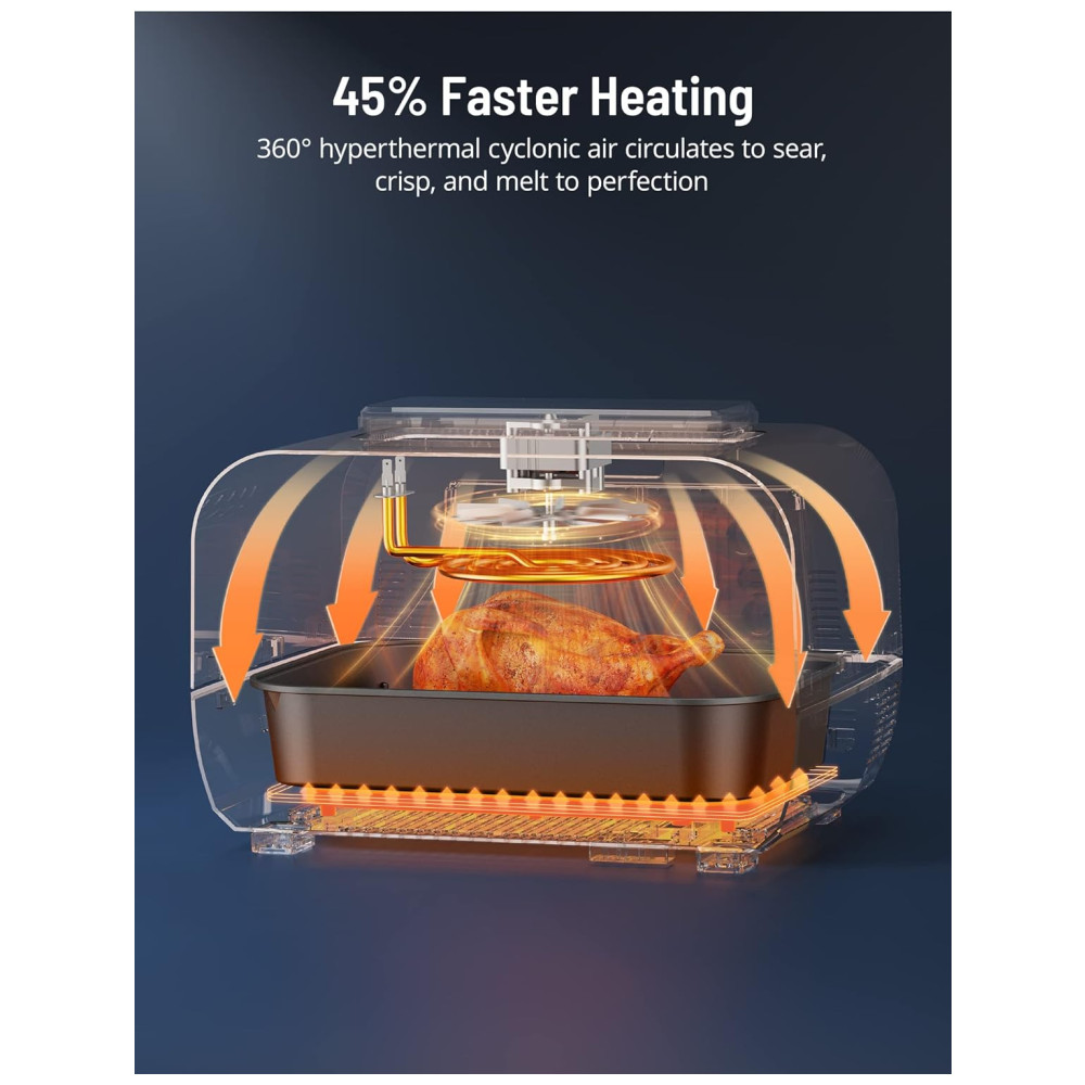 PROJETO DE ALTA ALTA ALTA INTERIOR EXTRA: A alta altura interna da grade interna significa que há muito espaço para o calor do ar circular, resultando em tempos de cozimento mais rápidos e eficientes. Enquanto isso, a alta altura interna e a grade grande 22,9 x 30,5 centímetros permitem que grandes quantidades de alimentos sejam cozidos ao mesmo tempo.