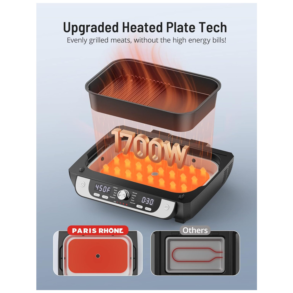 Churrasqueira Elétrica Grill 12 em 1 com Tecnologia Air Fryer Aço Inoxidável 110V 1700W PARIS RHÔNE PE BG002 Preta
