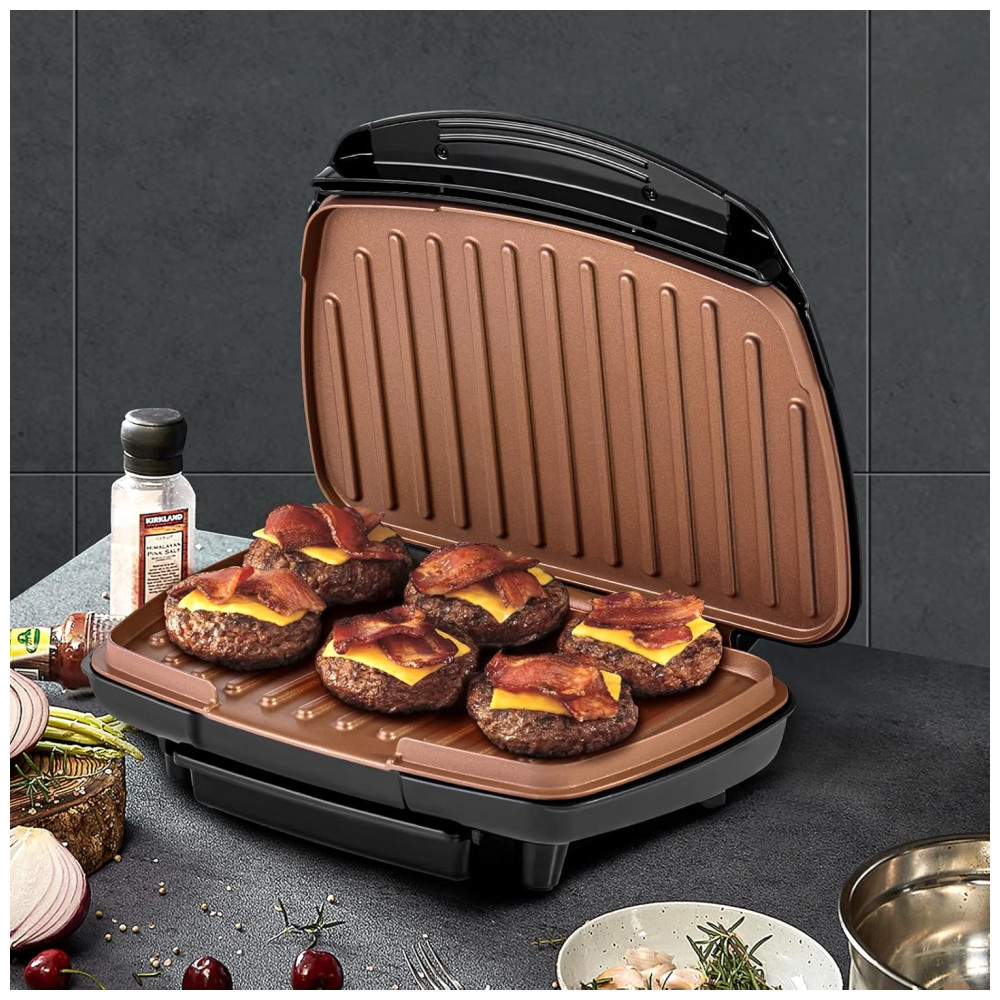 Grelhador clássico com 2 porções.A área com 2 porções da grelha é perfeita para hambúrgueres e frango para toda a família ou uma refeição mais pequena completa com vegetais grelhados.