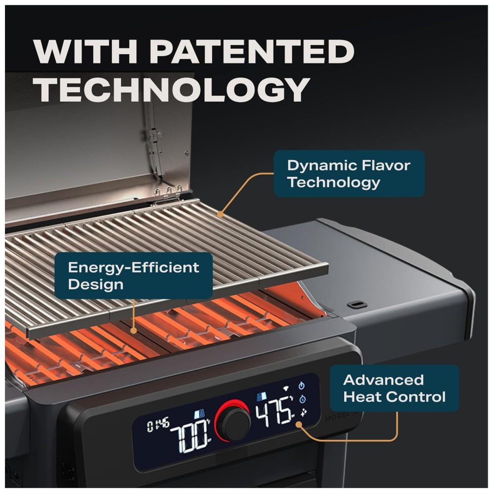 Sabor de Churrasco Completo! Projetada para proporcionar o mesmo sabor delicioso que você ama das churrasqueiras tradicionais, sem a complicação do carvão ou propano. Totalmente Elétrica, sem chamas abertas, sem gás. Basta conectar sua churrasqueira a uma tomada padrão de 110 volts. Controle Inteligente da Churrasqueira: Controle preciso de temperatura, monitoramento em tempo real e receitas guiadas por chefs, tudo em um único aplicativo de smartphone. Zonas de Temperatura Dupla: Cozinhe diferentes alimentos nas temperaturas ideais simultaneamente e atinja uma temperatura de até 371ºC para selar perfeitamente. Compatível com Tomada Padrão: Este design totalmente elétrico é compatível com tomadas de 110V padrão, aquece em minutos produzindo resultados até 50 mais suculentos do que as churrasqueiras a gás tradicionais. Aquecimento Rápido e Preciso: Ampla faixa de 93ºC a 371ºC, 76ºC mais quente do que as principais churrasqueiras a gás para aquecimento mais rápido e controle preciso para grelhar, assar e defumar. Cozimento em Duas Zonas: Grelhe em duas temperaturas diferentes ou uniformemente em toda a superfície e controle tudo remotamente com o aplicativo Current. Modo de Limpeza Inteligente: Pressione um botão para queimar detritos até virarem cinzas e deixe a churrasqueira desligar automaticamente, tornando a limpeza pós-churrasco sem esforço. Construída para Durar: Segura para Apartamentos, construção resistente às intempéries mais aprovação NFPA, segura para varandas e espaços ao ar livre sem propano ou emissões.