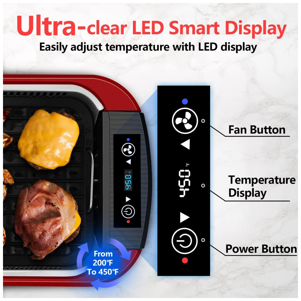 Usar e limpar e zenar é uma brisa O visor inteligente de LED ultra claro ajuda você a ajustar a temperatura de 93 a 232C. Assim como um forno, esses controles permitem que você defina um determinado calor, o que torna o cozimento de uma variedade de alimentos fácil e eficiente. A placa de aquecimento com revestimento antiaderente permite que os alimentos sejam retirados facilmente sem deixar resíduos. Várias peças destacáveis facilitam a limpeza. Máquina de lavar louça segura. Isso evita o incômodo de limpar a cozinha.