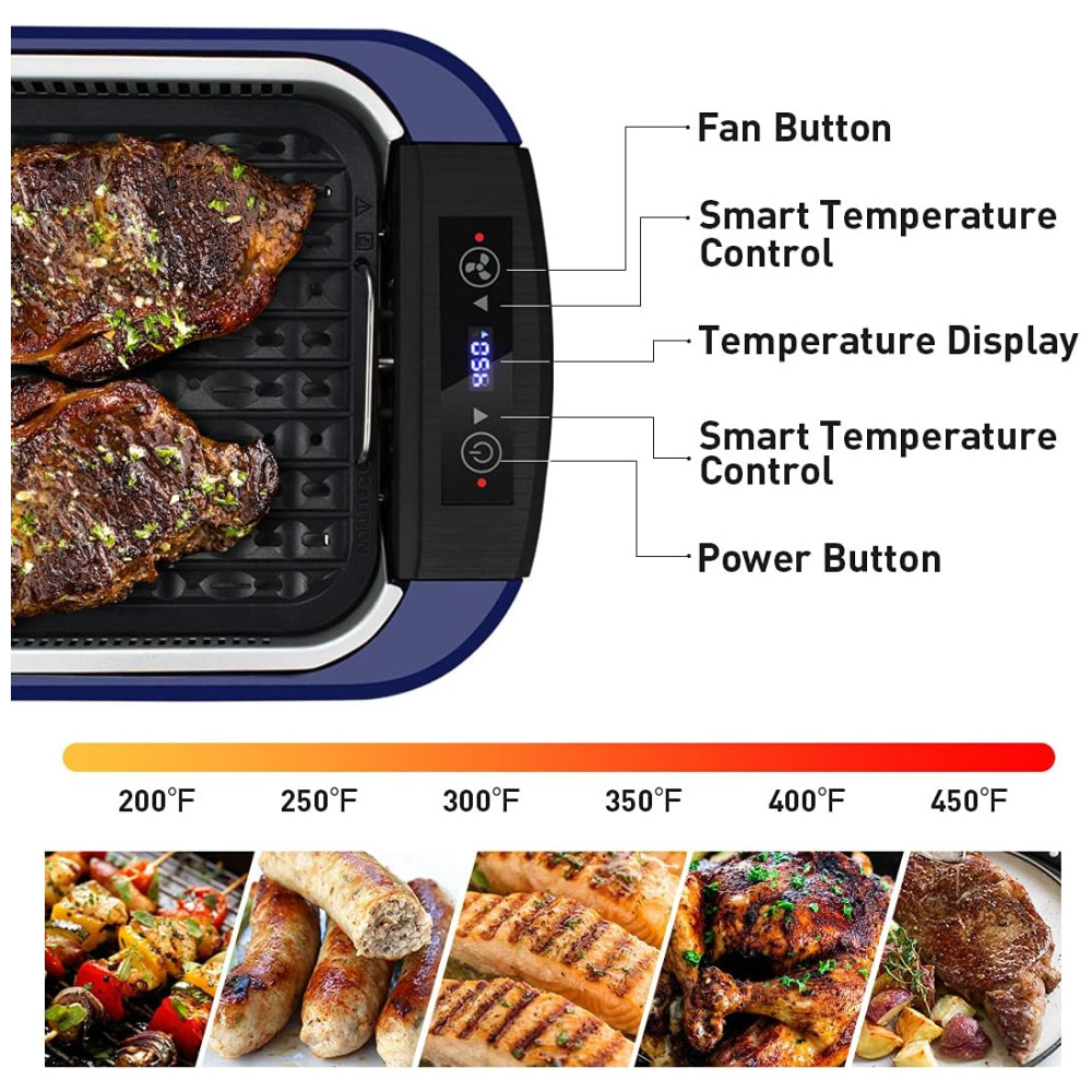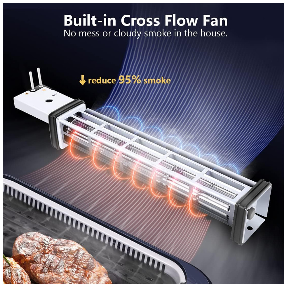 Uma verdadeira grelha interna sem fumaça CUSIMAX Smokeless Grill com extrator de fumaça Turbo afasta a maior parte da fumaça ao grelhar. Você não precisa se preocupar em disparar o alarme de fumaça ou fazer todo o condomínio cheirar como um restaurante de churrasco durante o cozimento. Desfrute de churrasco e cerveja dentro de casa juntos
